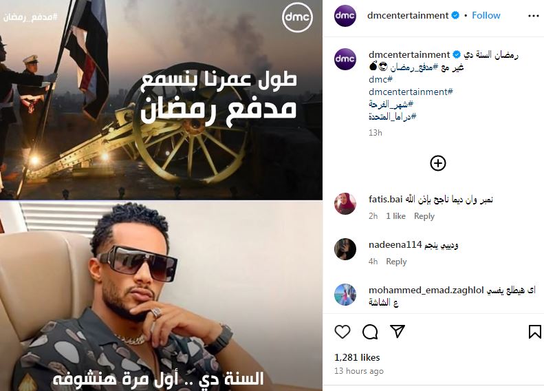 في نفس السياق كان النجم محمد رمضان قد شوق جمهوره بفيديو على موقع التواصل الاجتماعى إنستجرام، وعلق قائلا: "وأنت قاعد بتفطر هتبقى جايب قناة دى إم سى استنى مدفع رمضان بعد الأذان على طول، وباختصار شديد أنا ما ليش تقليد".