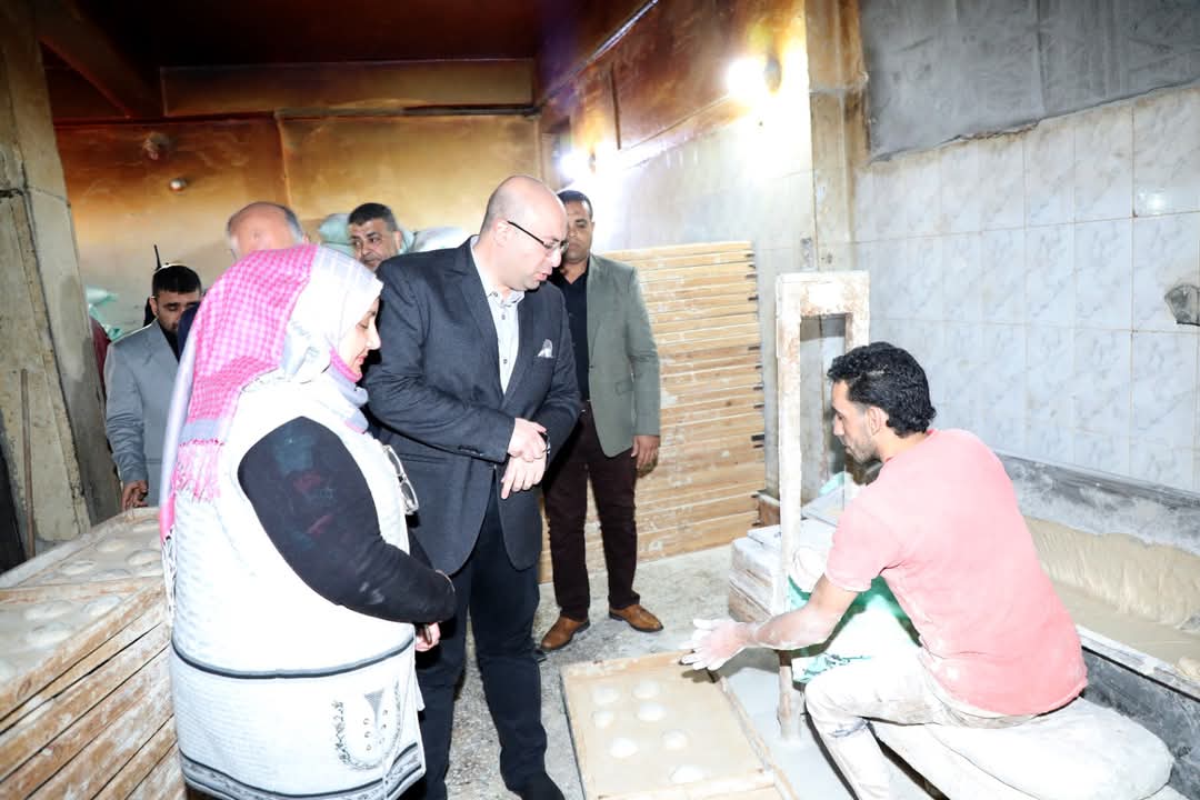 وخلال الجولة، تفقد المحافظ مراحل إنتاج الخبز بدءًا من عملية العجن وصولًا إلى التوزيع، مشددًا على ضرورة الالتزام بالمعايير الفنية والصحية لإنتاج رغيف خبز مطابق للمواصفات القياسية، وضمان حصول المواطنين على حصتهم من الدعم التمويني بالجودة المطلوبة.