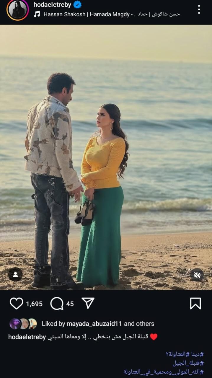 تواصل الفنانة هدي الأتربي الترويج لـ دورها في مسلسل العتاولة 2 المقرر طرحه في رمضان 2025، ونشرت هدي الأتربي صورة من كواليس مسلسل العتاولة 2 تجمعها مع الفنان أحمد كشك، وذلك من خلال حسابها الرسمي عبر موقع تبادل الصور والفديوهات القصيرة “إنستجرام”، وعلقت: “ قنبلة الجيل مش بتخطي.. إلا ومعاها السبتي”.