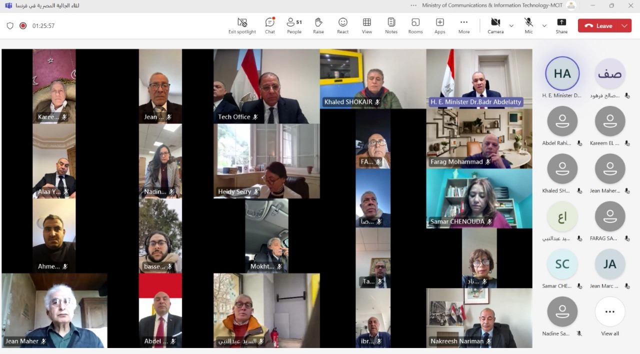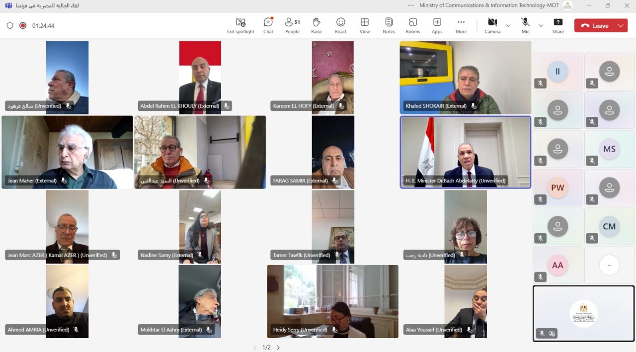 شارك الدكتور بدر عبد العاطى وزير الخارجية والهجرة وشئون المصريين في الخارج فى اللقاء الافتراضى ، الذي نظمه السفير نبيل حبشي نائب وزير الخارجية للهجرة وشئون المصريين في الخارج مع الجالية المصرية في فرنسا يوم الاحد 23 فبراير2025 بحضور السفير علاء يوسف سفير جمهورية مصر العربية لدى فرنسا والسفير تامر توفيق القنصل العام بباريس، والسفيرة هايدي سري القنصل العام بمارسيليا ومشاركة السيد السفير تامر المليجي مساعد وزير الخارجية للشئون القنصلية والسيدة السفيرة سيلفيا فؤاد نائب مساعد وزير الخارجية للشئون القنصلية.