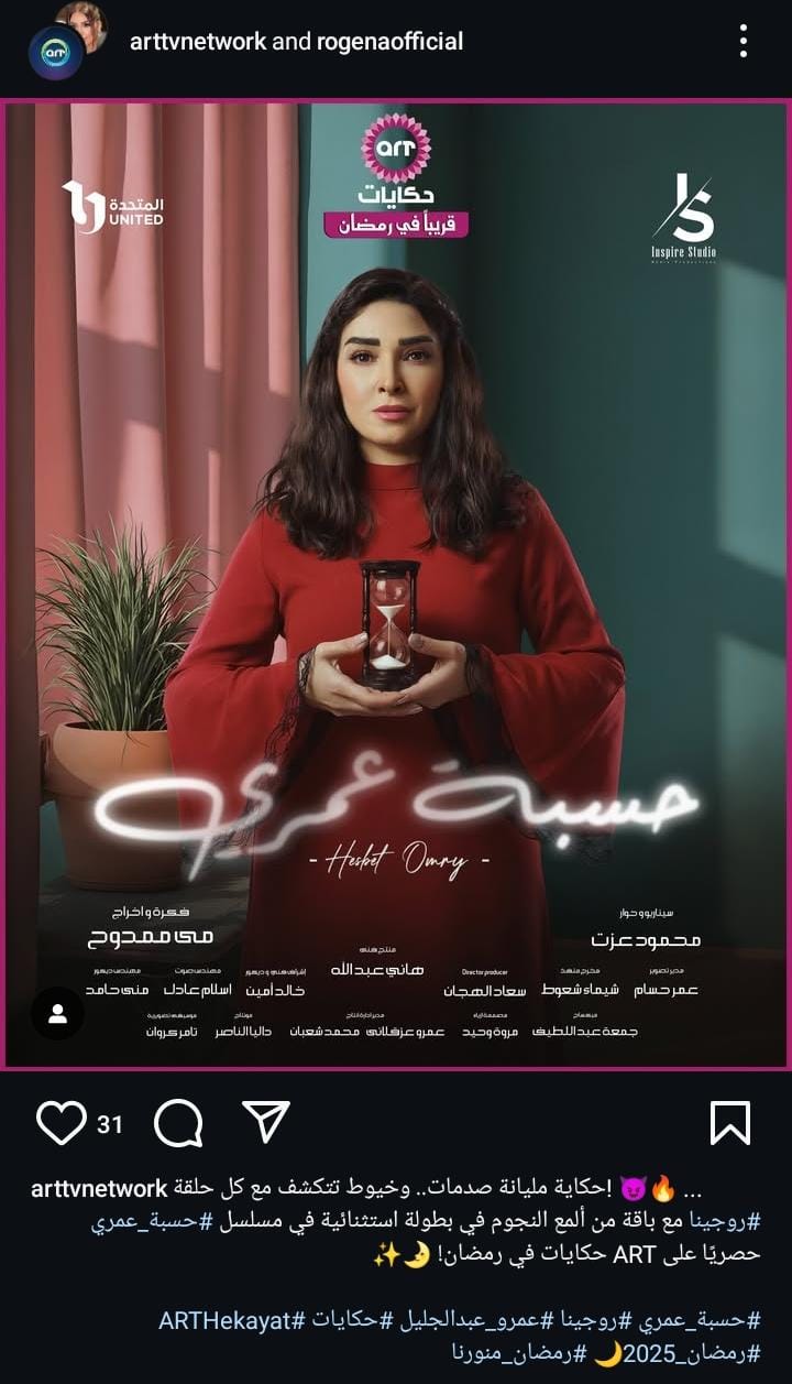 مسلسلات رمضان 2025.. مع اقتراب موسم دراما رمضان 2025 أعلنت عدد من القنوات عن عرض مسلسل حسبة عمري بطولة روجينا علي شاشتها ومن أبرز هذه القنوات هي قناة Art حكايات.