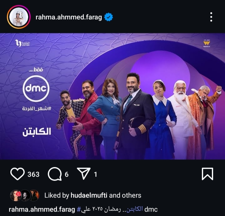 تواصل الفنانة رحمه أحمد الترويج لمسلسل الكابتن بطولة أكرم حسني، ونشرت البوستر الرسمي للمسلسل وأعلنت من خلاله عرضه علي شاشة Dmc في رمضان، وذلك من خلال حسابها الرسمي عبر موقع تبادل الصور والفديوهات القصيرة "إنستجرام"، وعلقت:" الكابتن.. رمضان 2025 علي Dmc".
