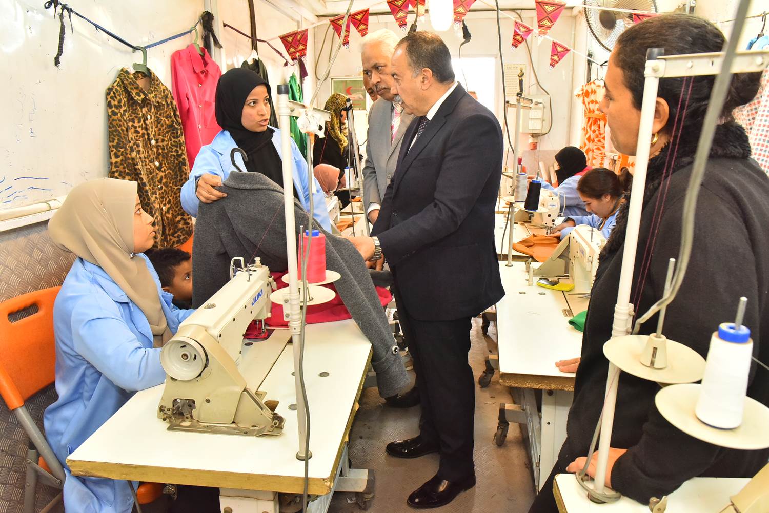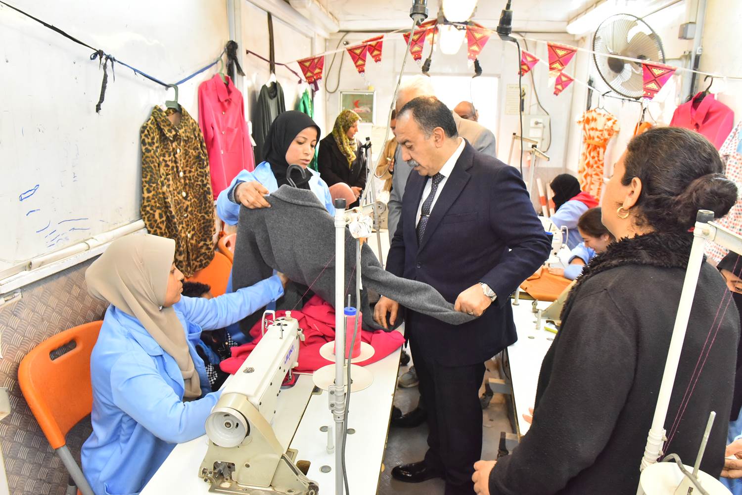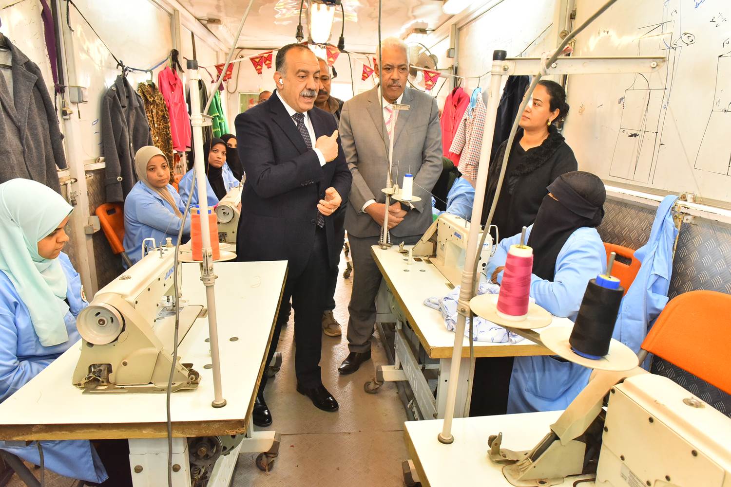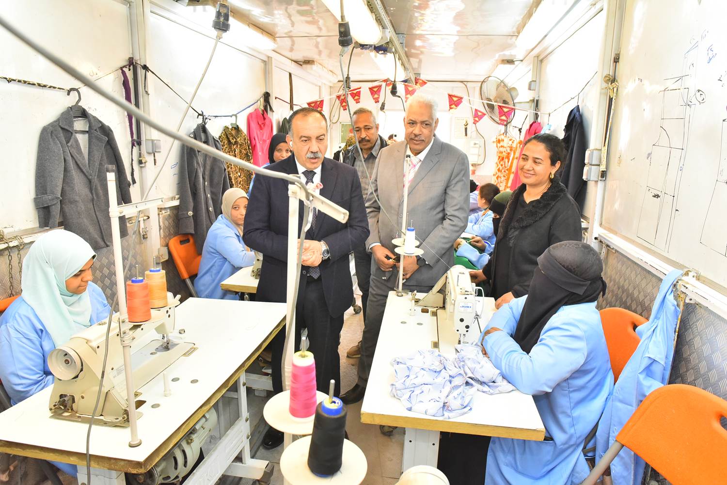 محافظ أسيوط يتفقد سير العمل بوحدة التدريب المتنقلة لأعمال الخياطة بمدينة أبوتيج