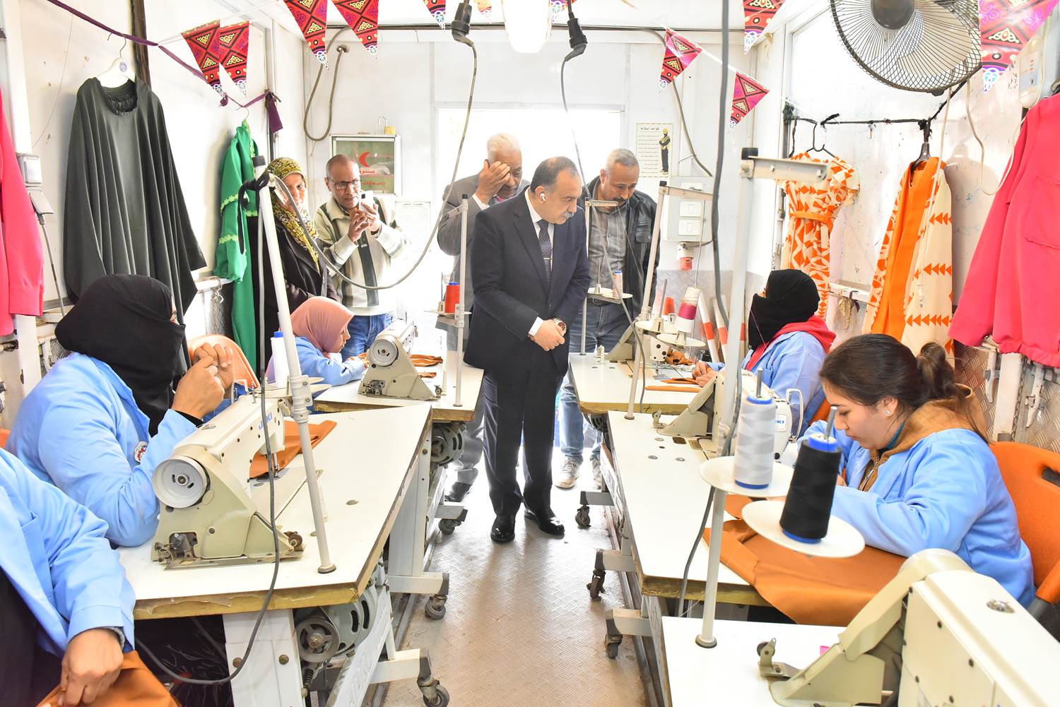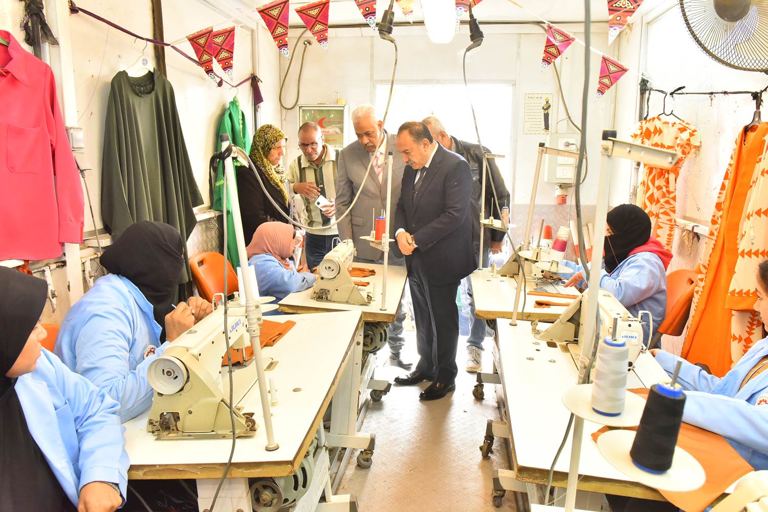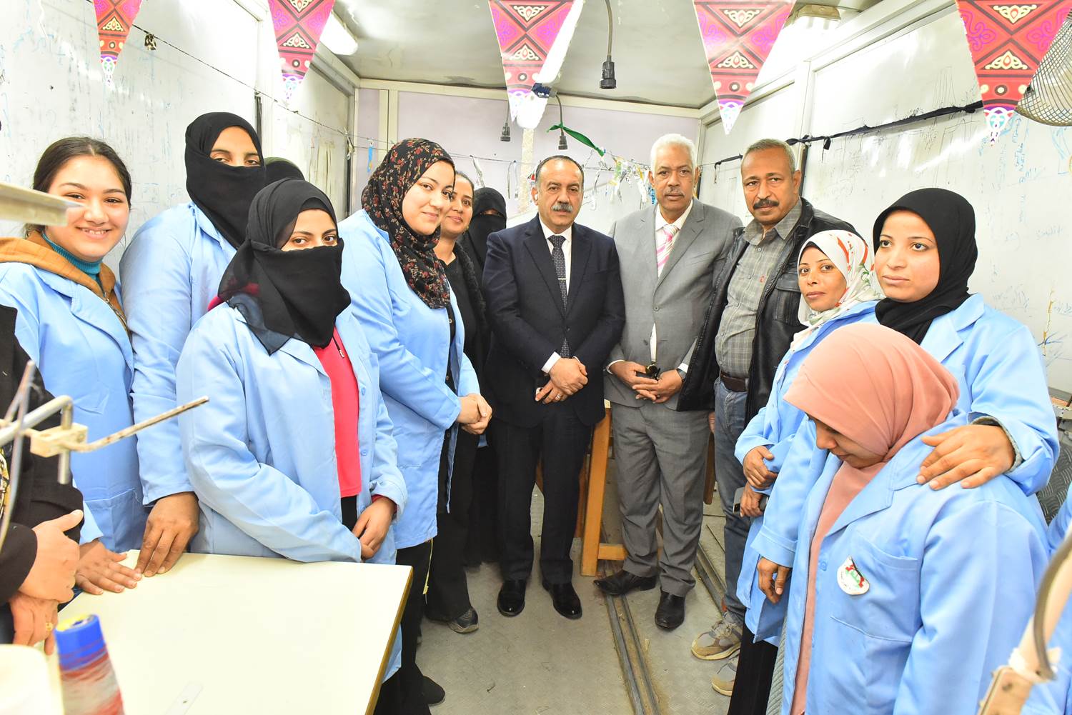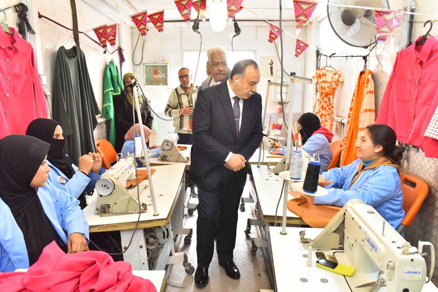 محافظ أسيوط يتفقد سير العمل بوحدة التدريب المتنقلة لأعمال الخياطة بمدينة أبوتيج