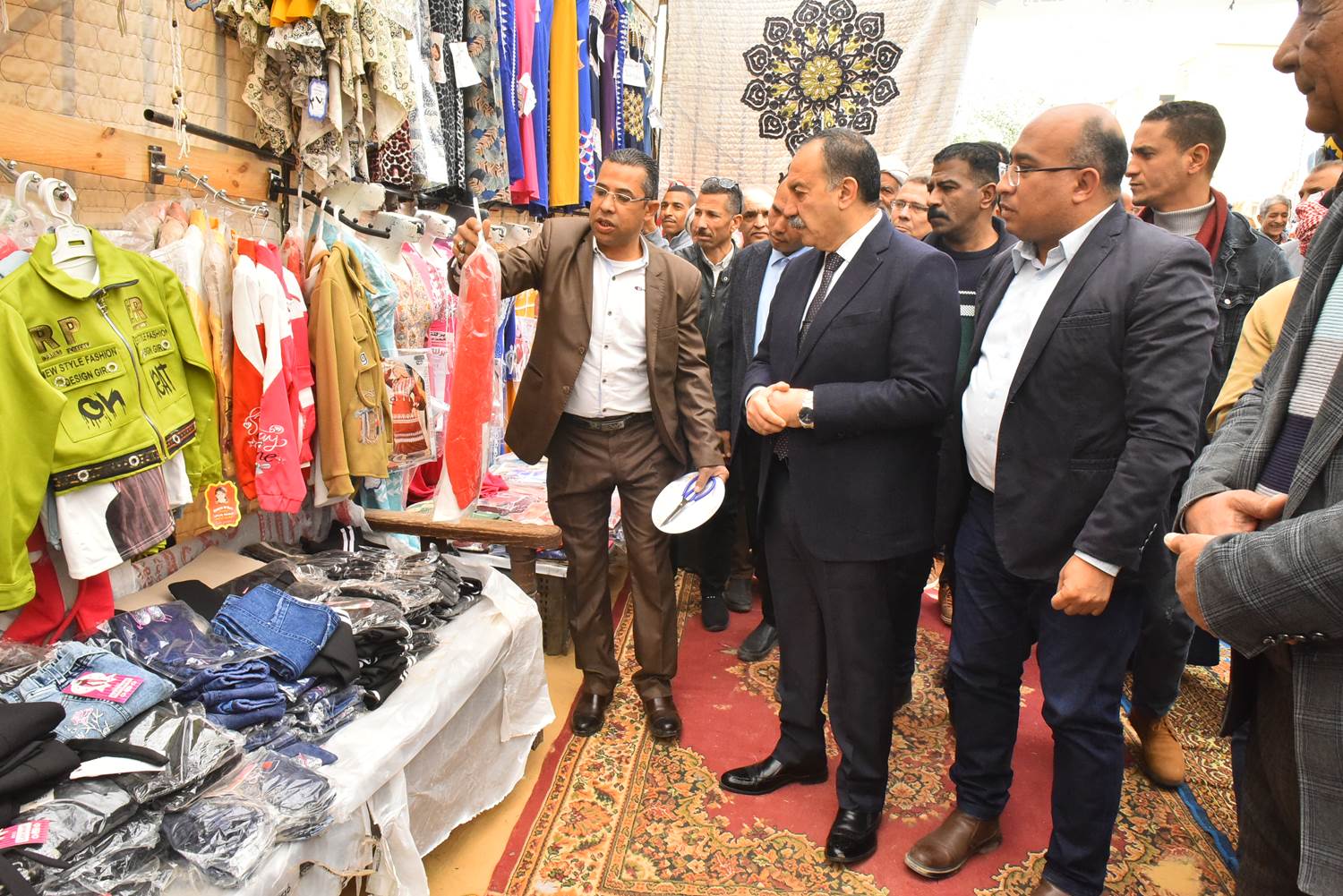 وأختتم المحافظ جولته بافتتاح معرض أهلاً رمضان للملابس الجاهزة بشارع الوحدة المحلية لمركز ومدينة الغنايم وعقب الإفتتاح تفقد المحافظ أقسام المعرض الذي يشمل الملابس الجاهزة لجميع المراحل العمرية وقسم الأحذية بجميع مقاساتها فضلاً عن المنسوجات واطمئن على جودة الخدمات المقدمة والأسعار المعلنة للاطمئنان بأنها أرخص من نظيرتها بالأسواق.