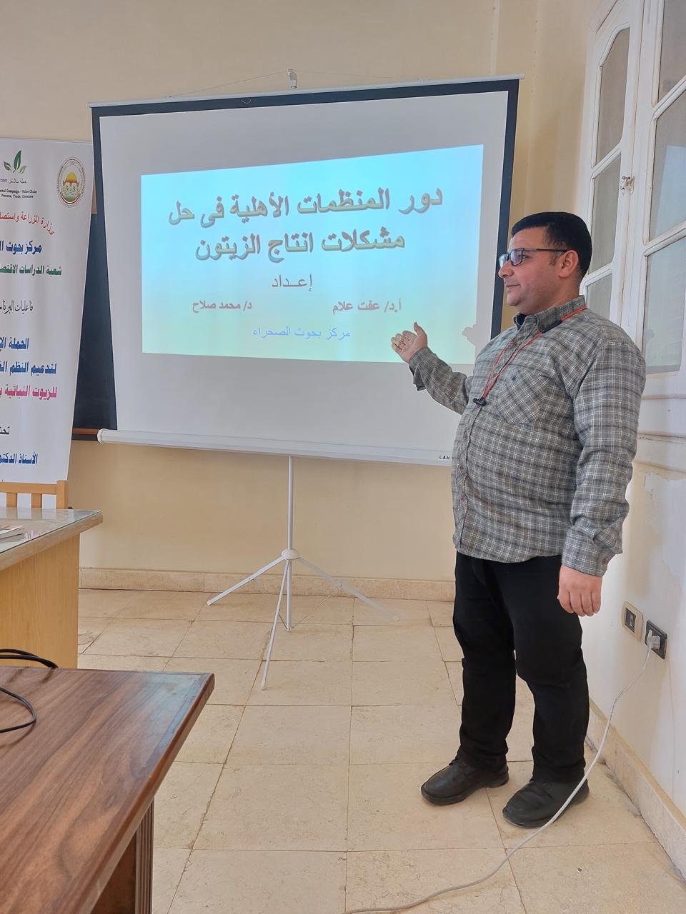 نظم مركز بحوث الصحراء دورة تدريبية بعنوان "سبل تعزيز النظم الغذائية المستدامة لمزارع الزيتون في جنوب سيناء"، ويأتي ذلك في إطار خطة وزارة الزراعة واستصلاح الأراضي لتحقيق التنمية الزراعية المستدامة 2030، وتحت رعاية علاء فاروق وزير الزراعة واستصلاح الأراضي، وتوجيهات الدكتور حسام شوقي رئيس مركز بحوث الصحراء بتنفيذ الخطط البحثية الخاصة بقطاع سيناء، وتنفيذاً لتعليمات الدكتور محمد عزت نائب رئيس المركز للمشروعات والمحطات البحثية بتفعيل دور المحطات البحثية لخدمة المجتمع السيناوي.