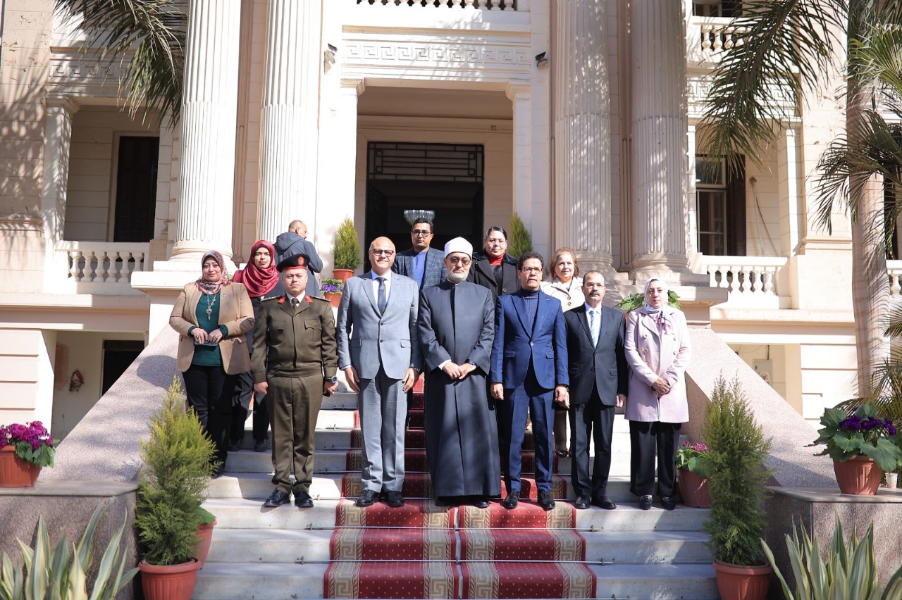محافظ القليوبية ورئيس جامعة بنها يستقبلان مفتى الديار المصرية