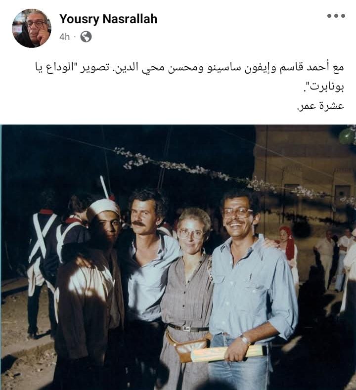 ونشر المخرج يسري نصر الله صوره تجمعه بالمخرج أحمد قاسم من تصوير فيلم “الوداع يا بونابرت"، وذلك من خلال حسابه الرسمي عبر موقع تبادل الصور والفيديوهات القصيرة “إنستجرام”، وعلق: “ مع أحمد قاسم و إيفون ساسينو ومحسن محي الدين من تصوير الوداع يا بونابرت.. عشرة العمر”.
