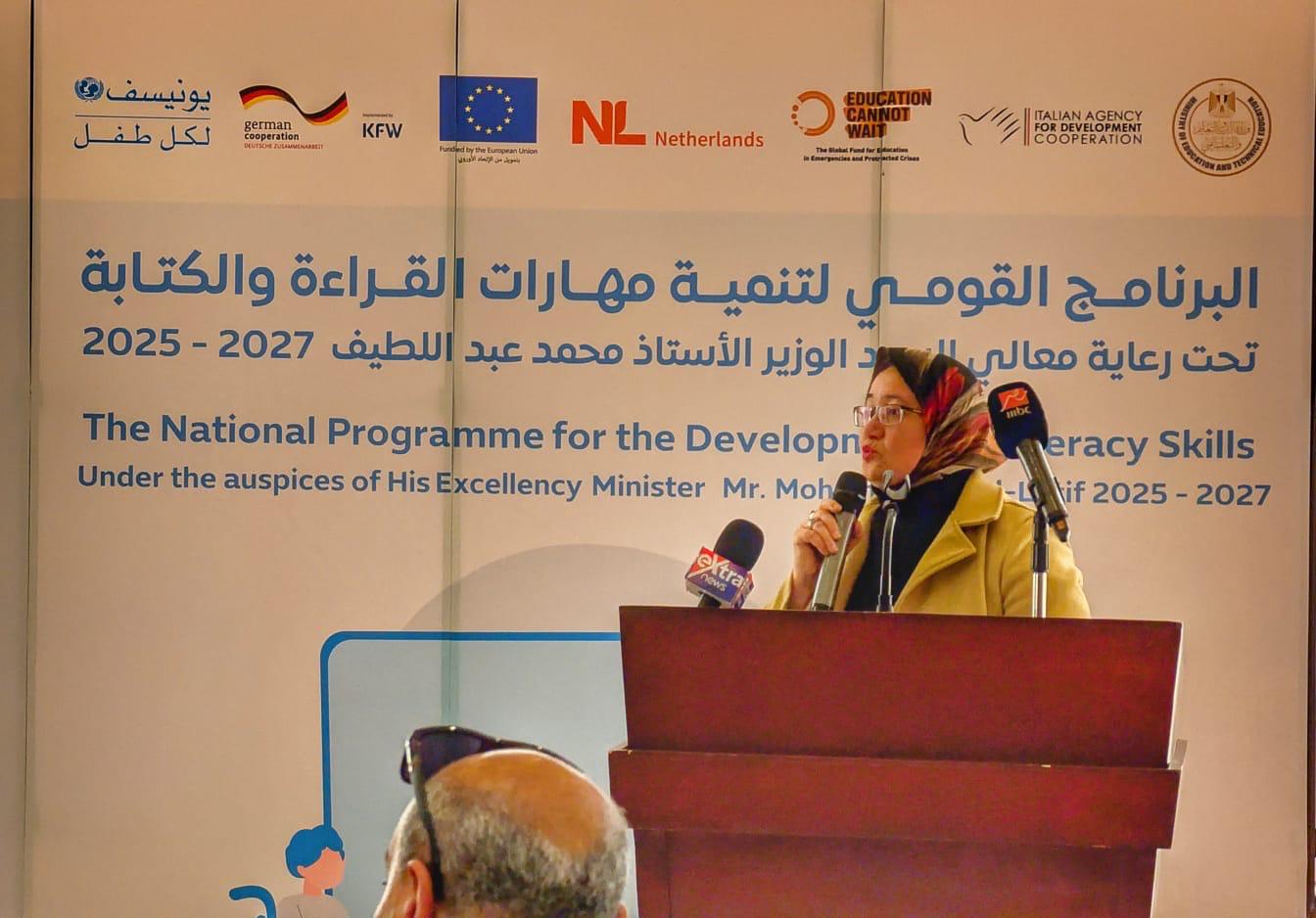 وأضافت أننا نشهد معًا اليوم إطلاق المرحلة الأولى من البرنامج الوطني لتنمية مهارات القراءة والكتابة، وهي مبادرة ستصل إلى نحو 2000 مدرسة، وتُحدث أثرًا مباشرًا على أكثر من مليون طفل خلال هذا العام وحده.
