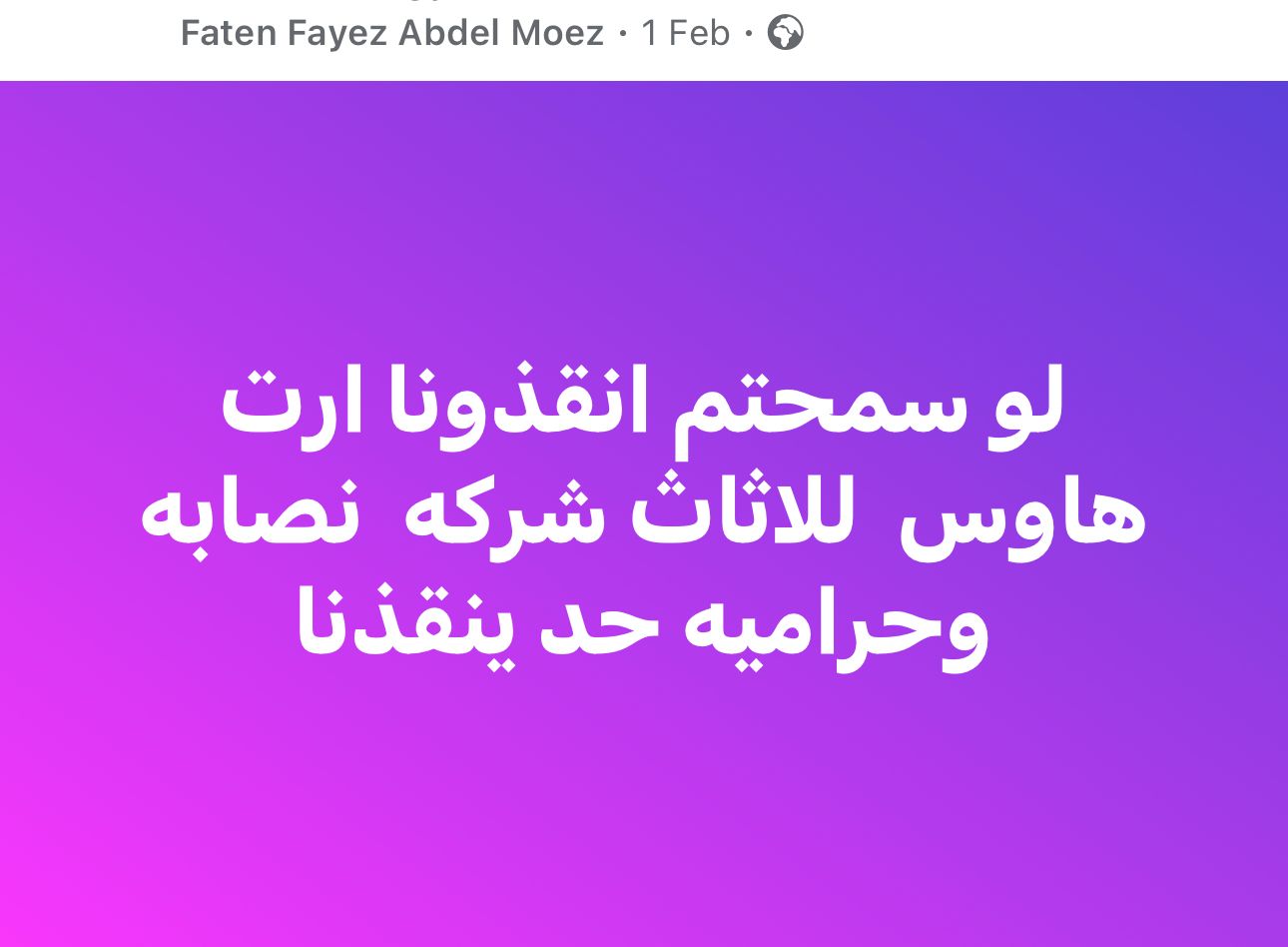 وقالت متضررة أخري،" لو سمحتم انقذونا ارت هاوس للاثاث شركه نصابه وحراميه حد ينقذنا".