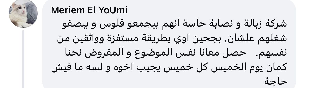 وتابعت أخري ،" شركة زبالة و نصابة حاسة انهم بيجمعو فلوس و بيصفو شغلهم علشان. بجحين اوي بطريقة مستفزة وواثقين من نفسهم. حصل معانا نفس الموضوع و المفروض احنا كمان يوم الخميس كل خميس يجيب اخوه و لسه ما فيش حاجة".