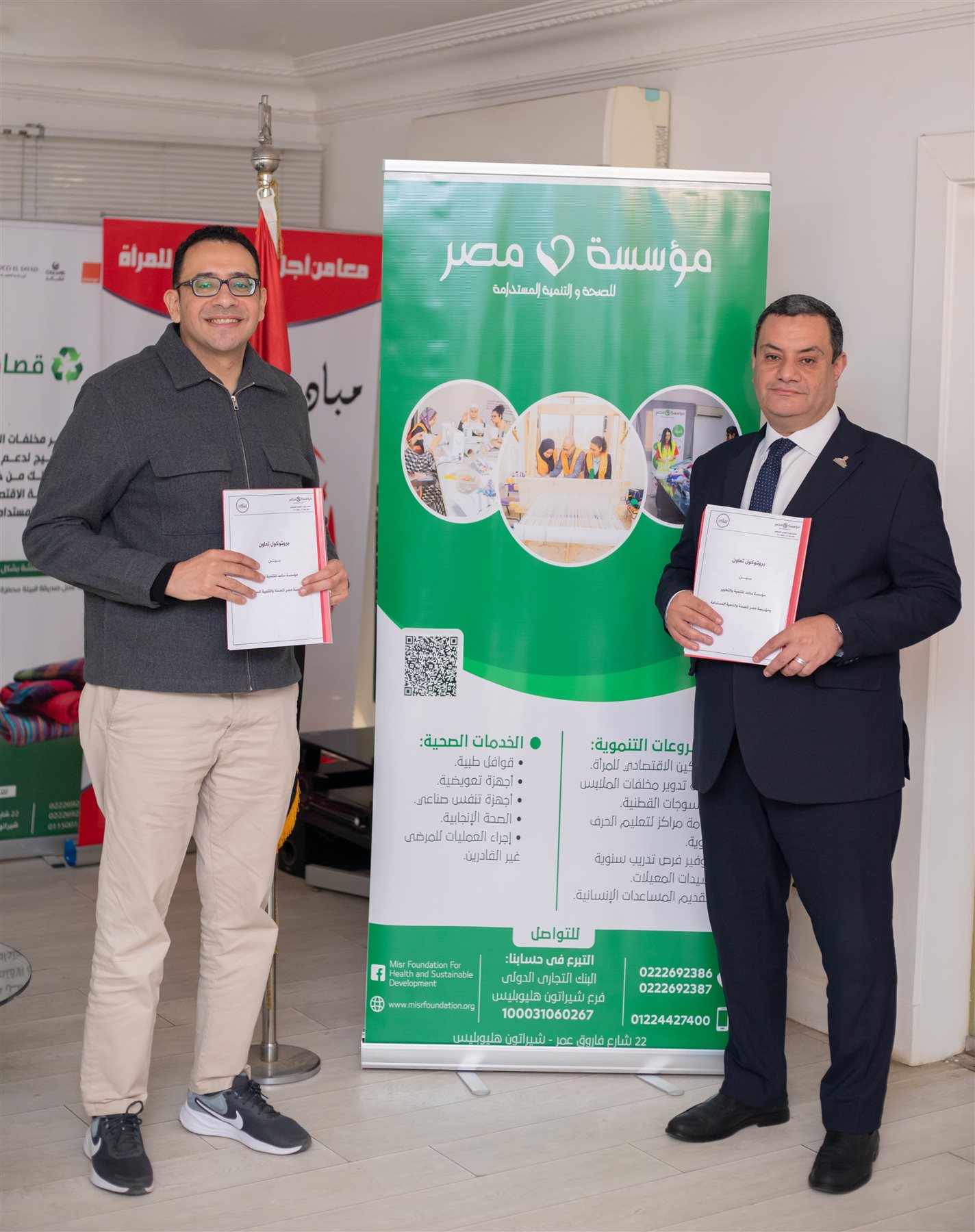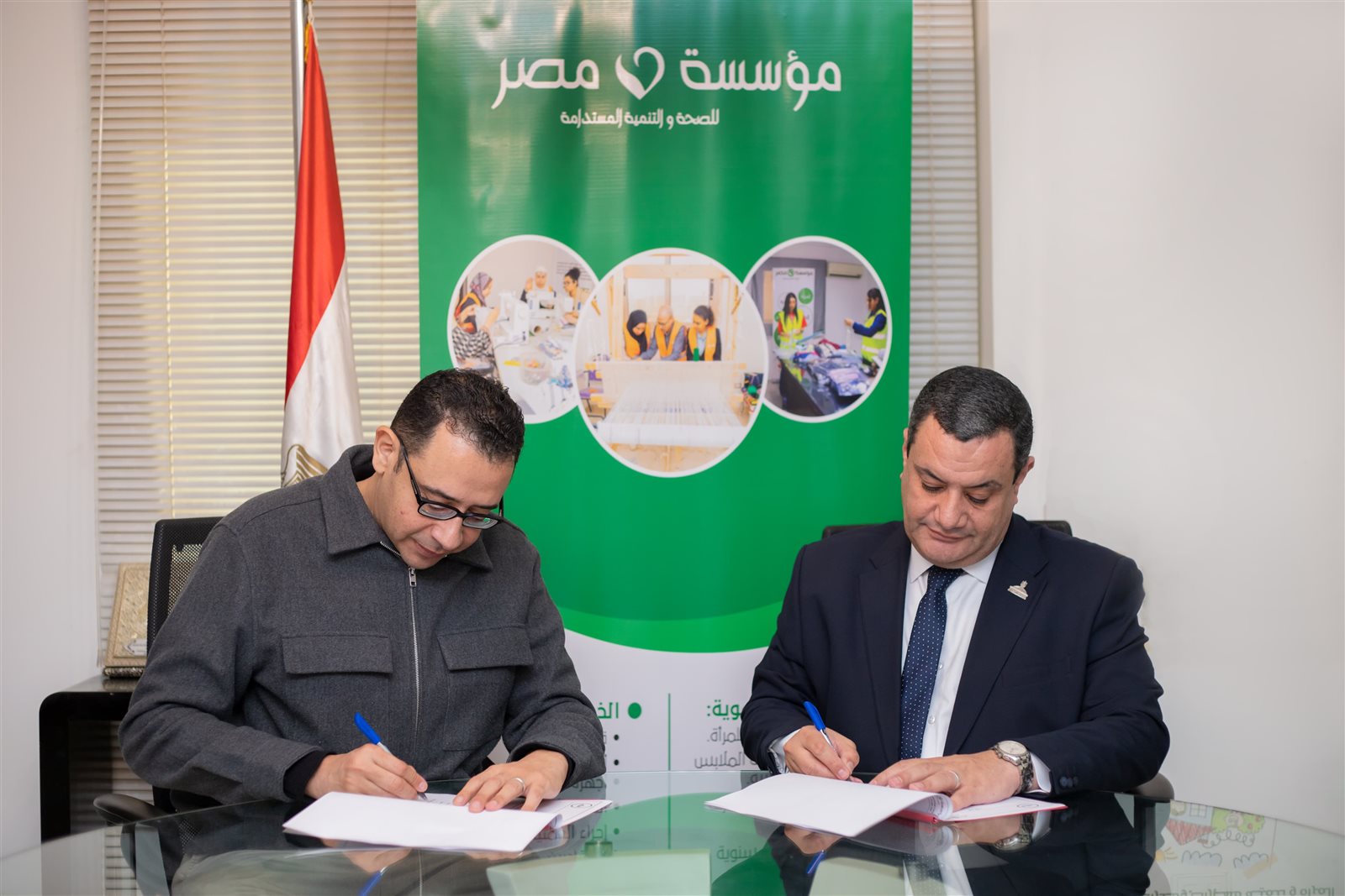 وقام بتوقيع البروتوكول النائب أكمل نجاتي عضو مجلس الشيوخ ورئيس مجلس أمناء مؤسسة ساعد للتنمية والتطوير والدكتور عمرو حسن مؤسس مؤسسة مصر للصحة والتنمية المستدامة والدكتور محمد سعيد حداية أمين صندوق مؤسسة ساعد للتنمية والتطوير والدكتور عمرو هراس المدير التنفيذي لمؤسسة مصر للصحة والتنمية المستدامة والكاتب الصحفي زكي القاضي عضو مؤسسة مصر للصحة والتنمية المستدامة، وذلك في إطار التعاون المشترك بين كلا من مؤسسة مصر للصحة والتنمية المستدامة ومؤسسة ساعد للتنمية والتطوير.