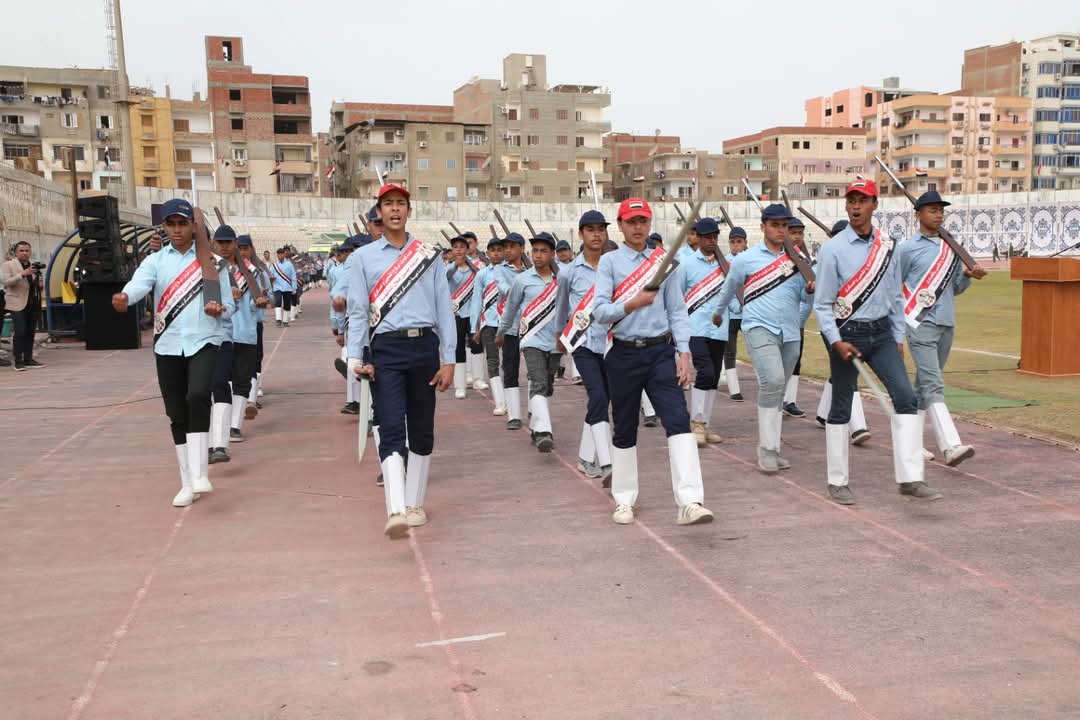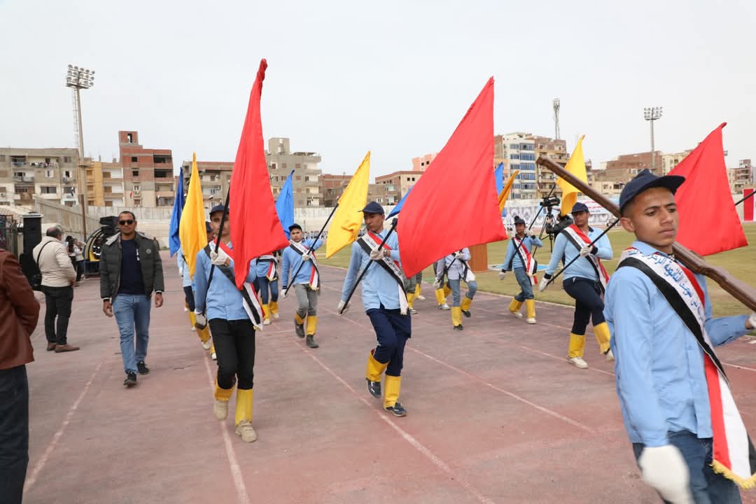 كما شهد الحضور طابور عرض مميزًا، شارك فيه طلاب المدارس والمعاهد الأزهرية، مقدمين نماذج مجسمة جسدت أشهر المعالم الأثرية والمشروعات القومية في كل مركز من مراكز المحافظة، ومن أبرز تلك المجسمات؛ نموذج الطائرة ميج 21، التي شاركت في حرب أكتوبر، وتم وضعها في ميدان العبور، مجسم تمثال العبور، الذي نحته الفنان جمال السجيني، نموذج لهرم ميدوم، أحد مكونات شعار المحافظة.