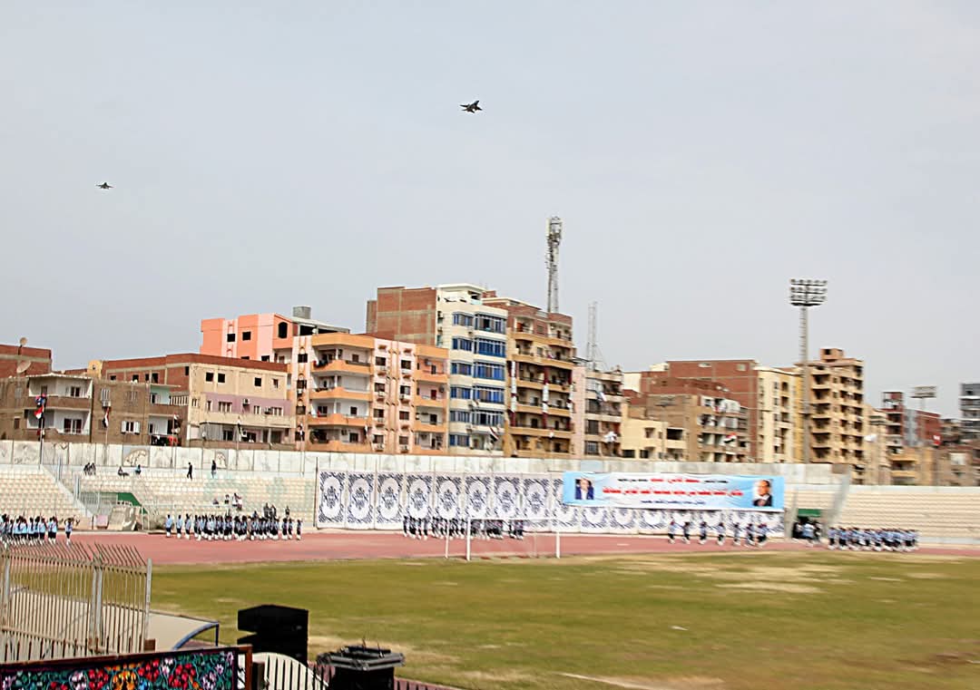 وشهد الحفل مشاركة متميزة من قاعدة بني سويف الجوية، حيث قدم نسور الجو استعراضًا جويًا مبهرًا، تضمن تحليق طائرات حربية في سماء الاستاد، وسط أجواء من الحماس والإعجاب، مما أضفى طابعًا استثنائيًا على الاحتفالية.