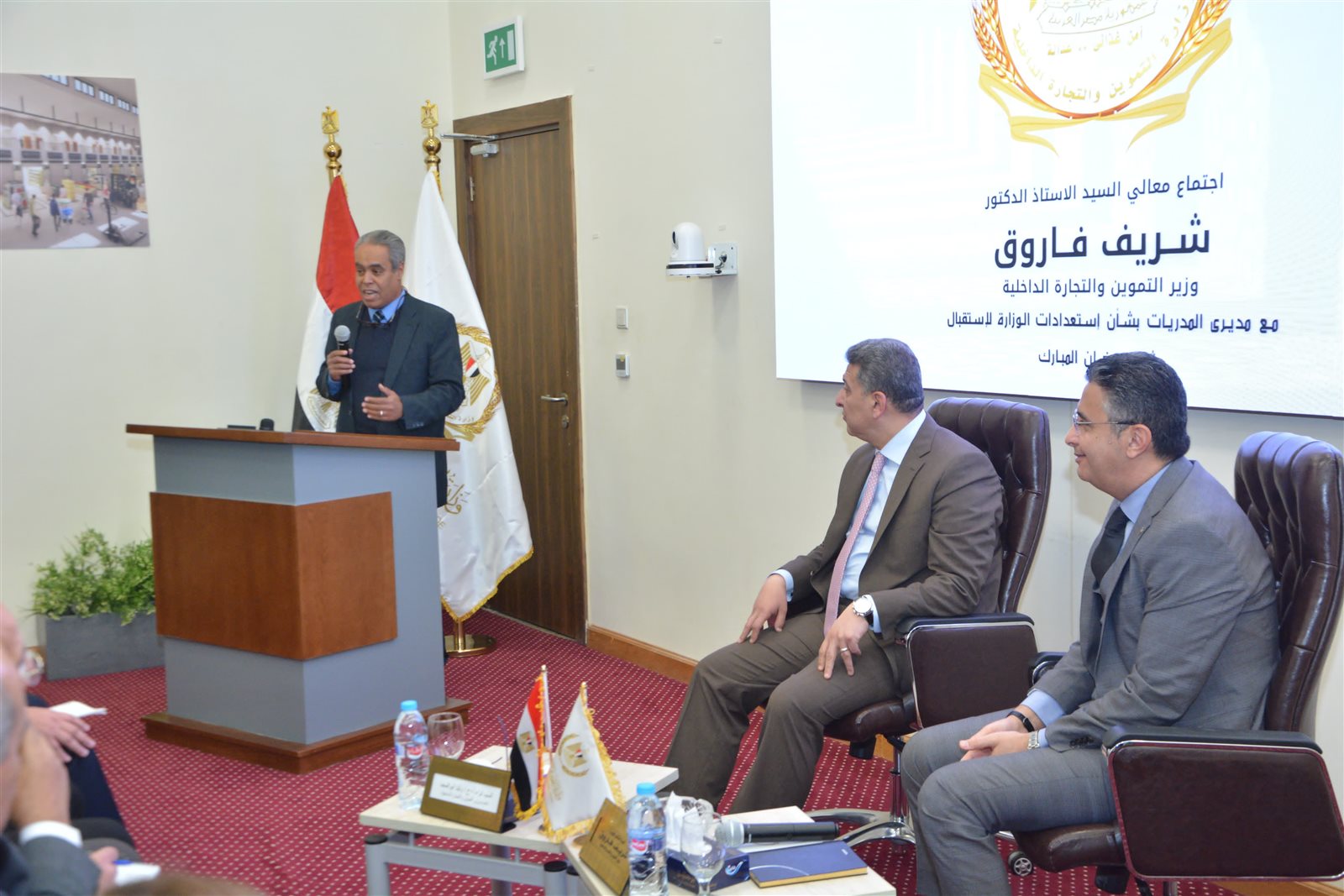 جاء ذلك بحضور كل من اللواء وليد ابو المجد نائب وزير التموين والتجارة الداخلية، واللواء محمد فتح الله مدير الادارة العامة لشرطة التموين والتجارة الداخلية،و حسام الجراحي نائب رئيس الهيئة العامة للسلع التموينية والدكتورعلاء ناجي الرئيس التنفيذي للشركة القابضة للصناعات الغذائية، والدكتور أشرف صادق الرئيس التنفيذي للشركة القابضة للصوامع، والدكتور محمد عادل شتا مساعد الوزير للخدمات الرقمية، واحمد كمال معاون الوزير والمتحدث الرسمي، واحمد عصام معاون الوزير.