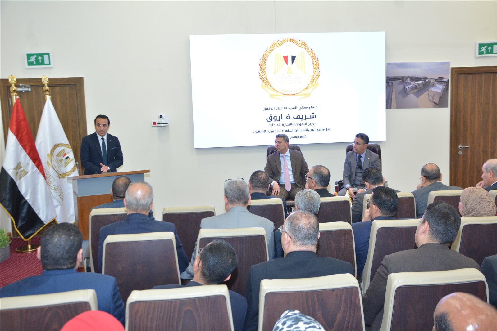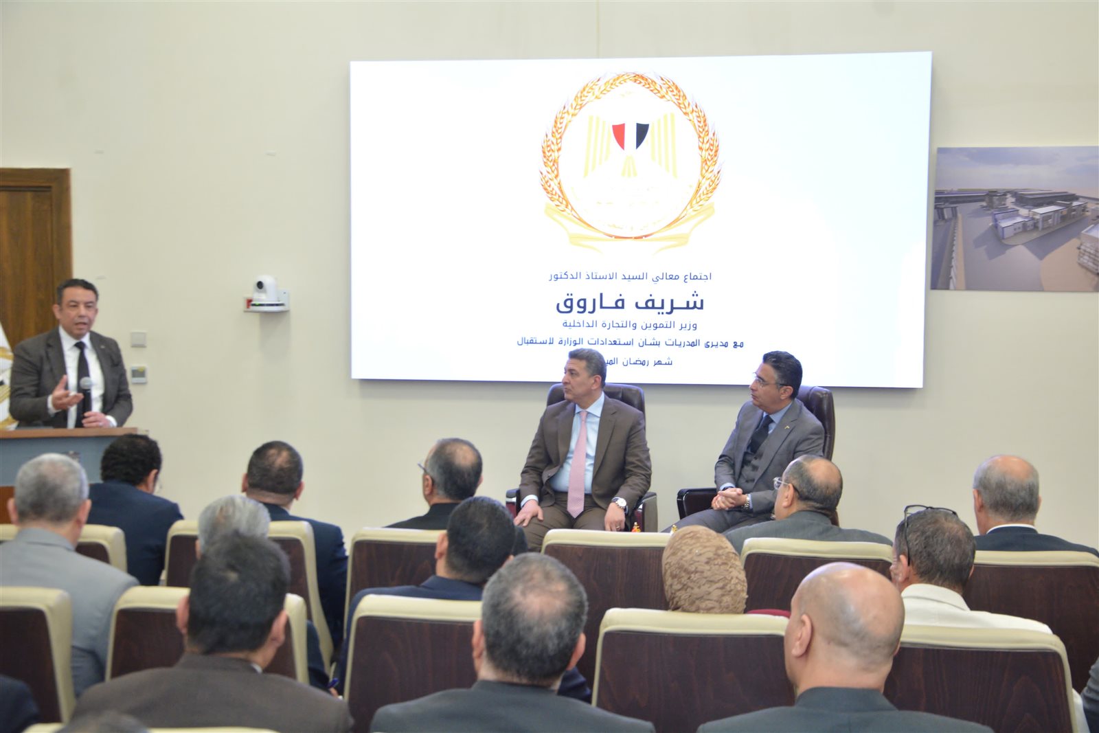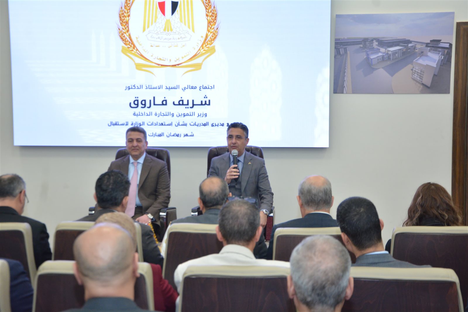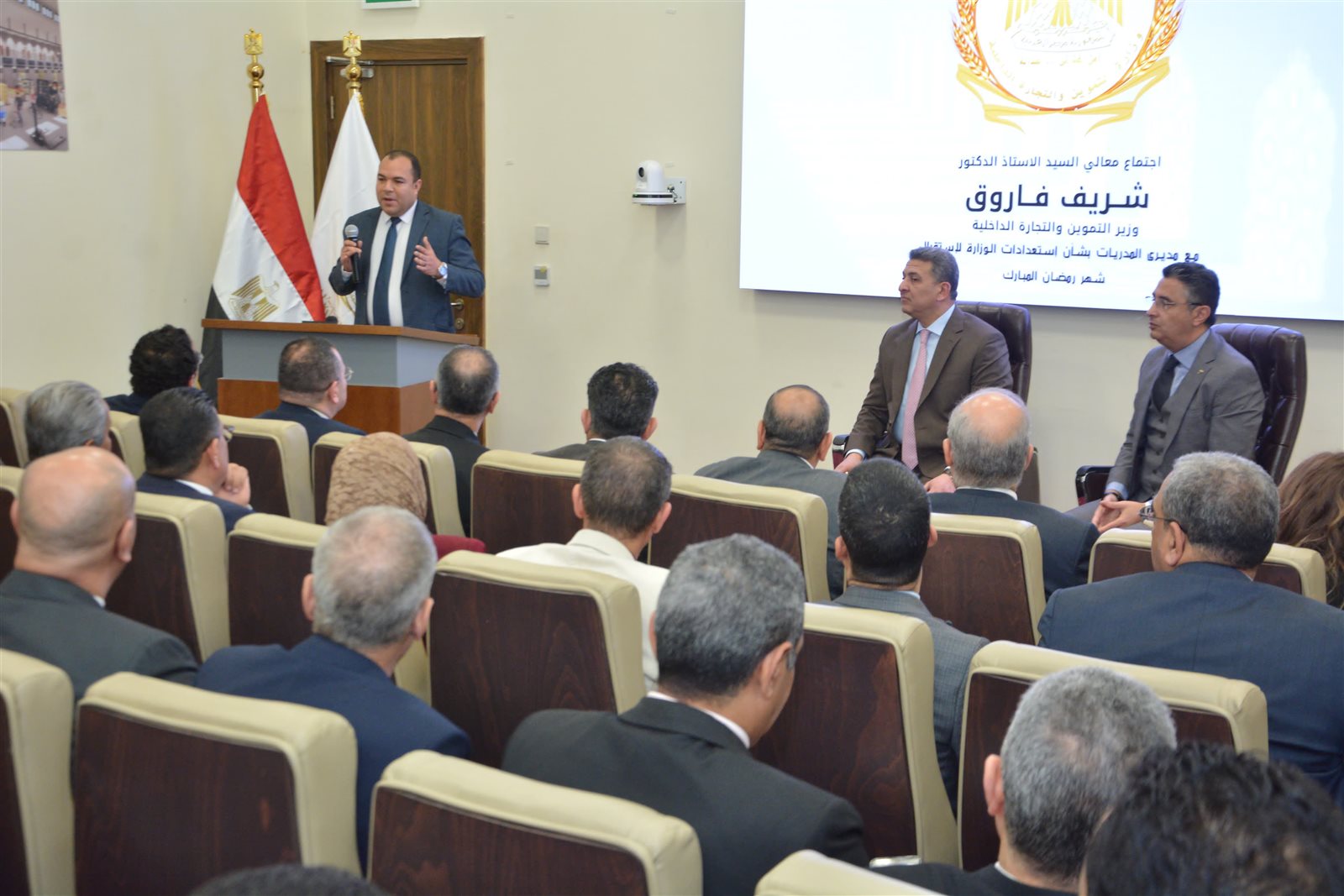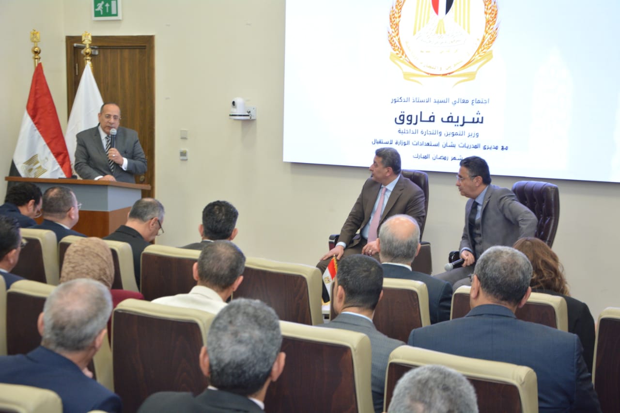 عقد الدكتور شريف فاروق، وزير التموين والتجارة الداخلية، اليوم اجتماعاً بمقر الوزارة بالعاصمة الإدارية الجديدة مع مديري المديريات التموينية بكافة محافظات الجمهورية، وذلك لمتابعة الاستعدادات لاستقبال شهر رمضان الكريم والموقف التنفيذي لتوافر السلع الأساسية بالأسواق، ومراقبة وضبط عملية تداول السلع، والتأكيد على تكثيف الرقابة والتفتيش على المخابز والمجمعات الاستهلاكية والمنشآت التموينية بالأسواق، وكذلك انتظام العمل بكافة أسواق اليوم الواحد ومعارض وشوادر اهلا رمضان.