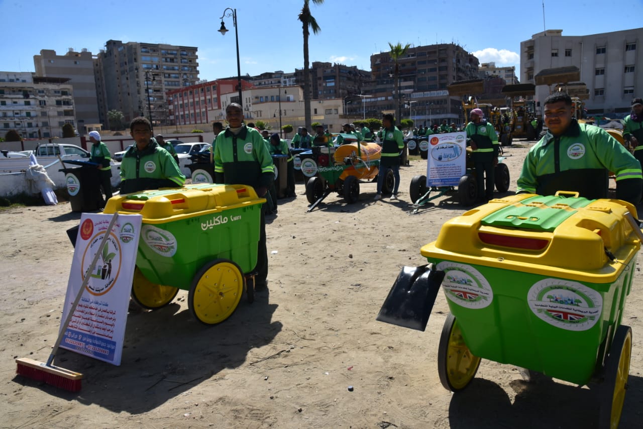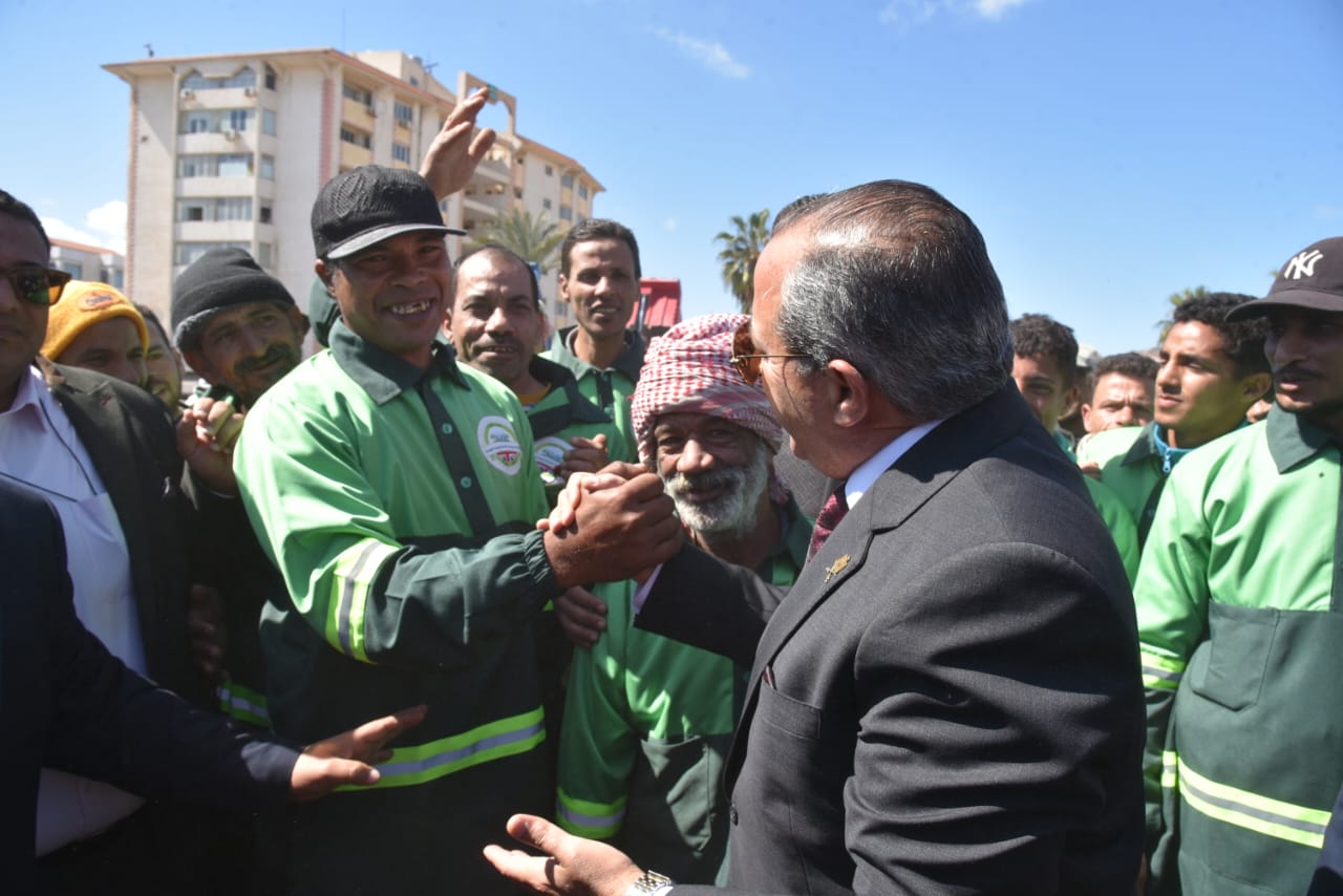 محافظ بورسعيد يتفقد معدات "الشركة البريطانية للنظافة" ويلتقي بعمال ومسئولي الشركة