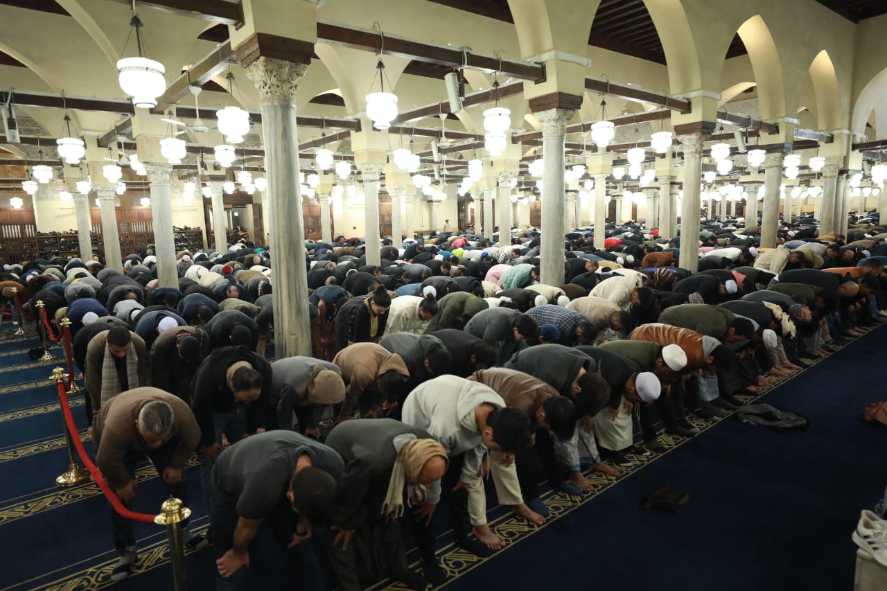 اصطف آلاف المصلين في أروقة وصحن الجامع الأزهر لأداء صلاتي العشاء والتراويح، من مختلف محافظات الجمهورية والطلاب الوافدين من مختلف دول العالم، في الليلة الأولى من ليالي شهر رمضان المبارك لعام 1446 هـ، رُكعًا سُجدًا يبتغون فضلًا من الله ورضوانًا، يقيمون الصلاة ويلهجون إليه بالدعوات، يطلبون الدرجات العلى ومغفرة الذنوب وتقبّل الأعمال الصالحة، وأن يعينهم على قيام الشهر الفضيل وصيامه والإكثار من الطاعات والتزوّد من الخيرات.