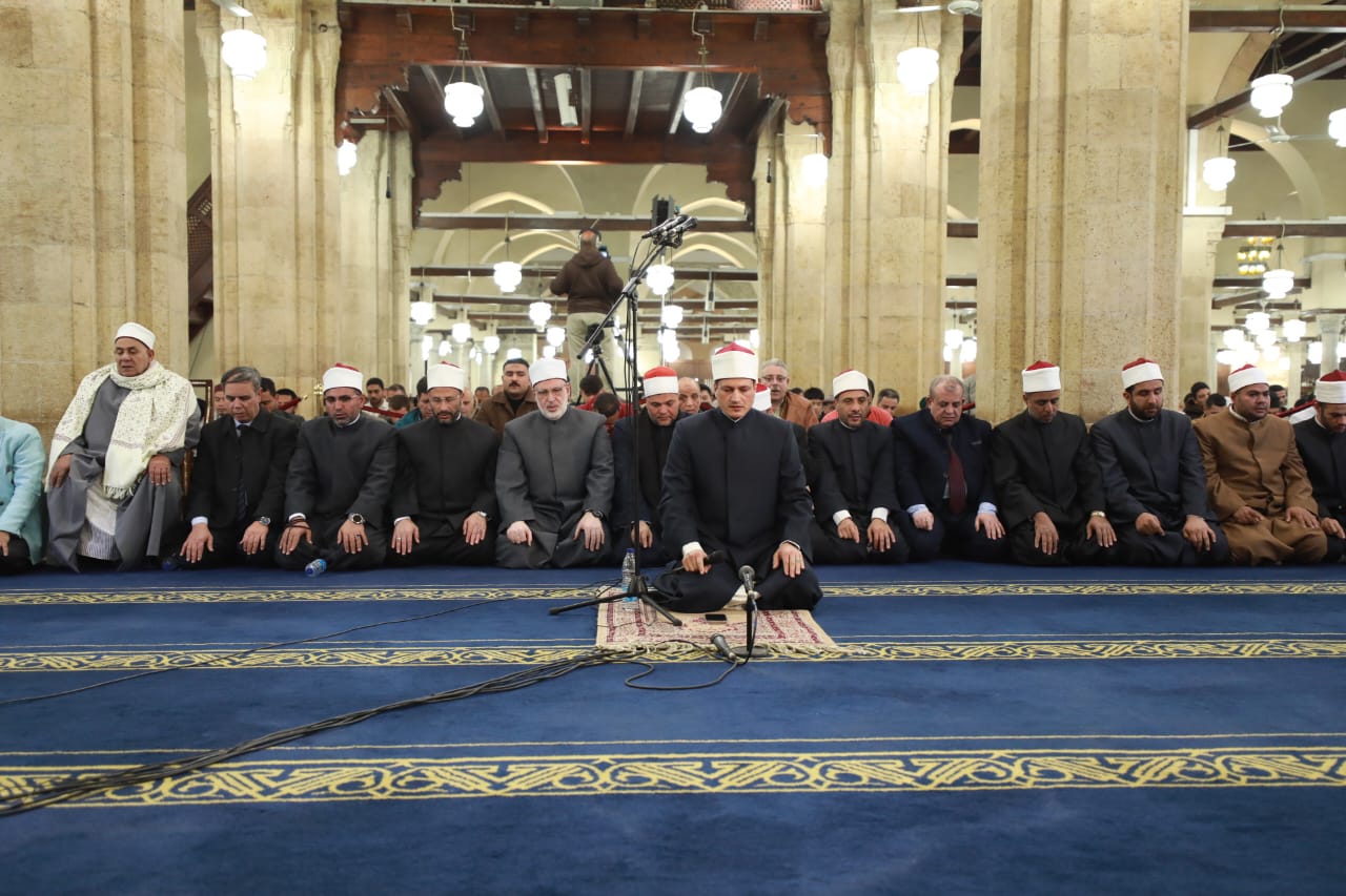 وتقدم المصلين فضيلةُ الدكتور محمد الضويني، وكيل الأزهر، والدكتور محمود الهواري، رئيس الإدارة المركزية للدعوة والإعلام الديني بمجمع البحوث الإسلامية، والدكتور عبدالمنعم فؤاد، المشرف العام على الأروقة العلمية بالجامع الأزهر، والشيخ حسن عبدالنبي، وكيل لجنة مراجعة المصحف، والدكتور هاني عودة، مدير عام الجامع الأزهر، ونخبة من علماء وقيادات الأزهر.