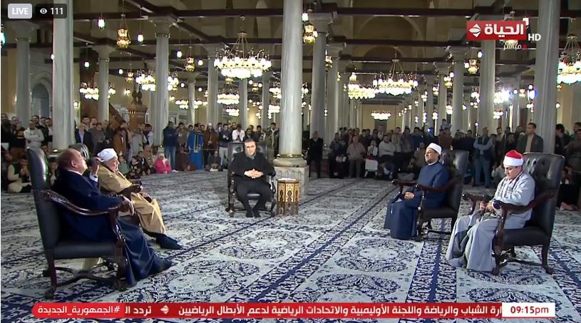 ويستضيف الإعلامي عمرو الليثي الدكتور أحمد نعينع والدكتور أحمد عمر هاشم والشيخ رمضان عبد المعز عقب صلاة التراويح الاولي من مسجد الامام الحسين في ليلة مباركة.