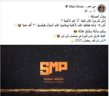 قدرها 20 ألف جنيه.. مي عمر تعلن عن مسابقة مسلسلها "إش إش" (صورة)