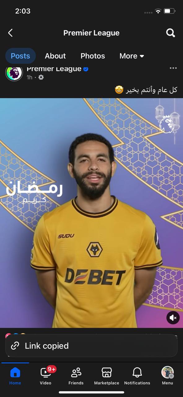 حرص الحساب الرسمي للدوري الإنجليزي الممتاز على موقع فيس بوك على تهنئة الجماهير بحلول شهر رمضان المبارك.