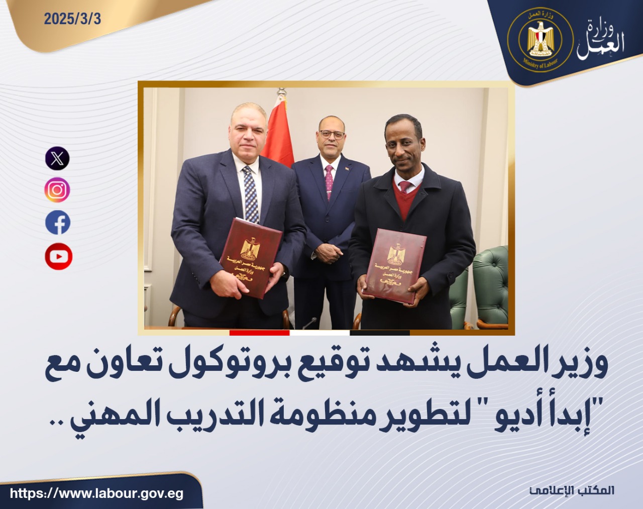 وزير العمل يشهد اتفاق تعاون مع "إبدا أديو " لتطوير منظومة التدريب المهني