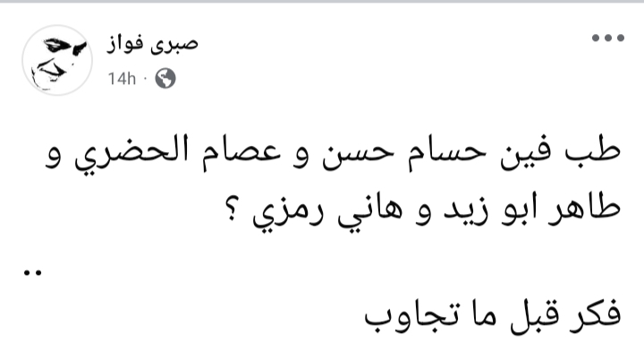 وأضاف: "طب فين حسام حسن و عصام الحضري و طاهر ابو زيد و هاني رمزي".
