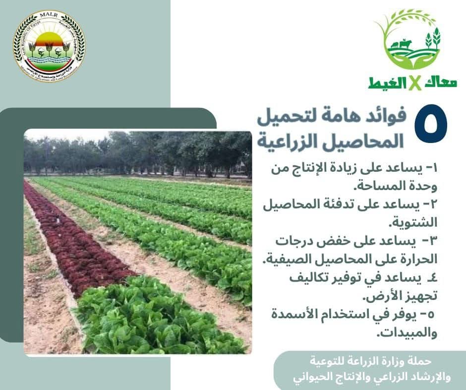 ويعد تحميل المحاصيل الزراعية، هو إمكانية زراعة محصولين او أكتر في حقل واحد، وله عدد من الفوائد الهامة من بينها:زيادة الإنتاج من وحدة المساحة، تدفئة المحاصيل الشتوية، فضلا عن خفض درجات الحرارة على المحاصيل الصيفية، وتوفير تكاليف تجهيز الأرض، كذلك ترشيد استخدام الأسمدة والمبيدات.