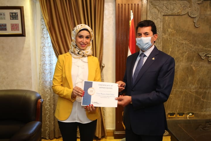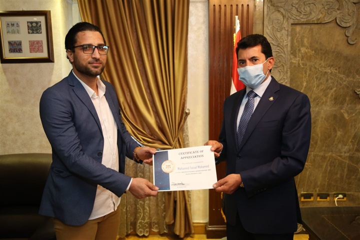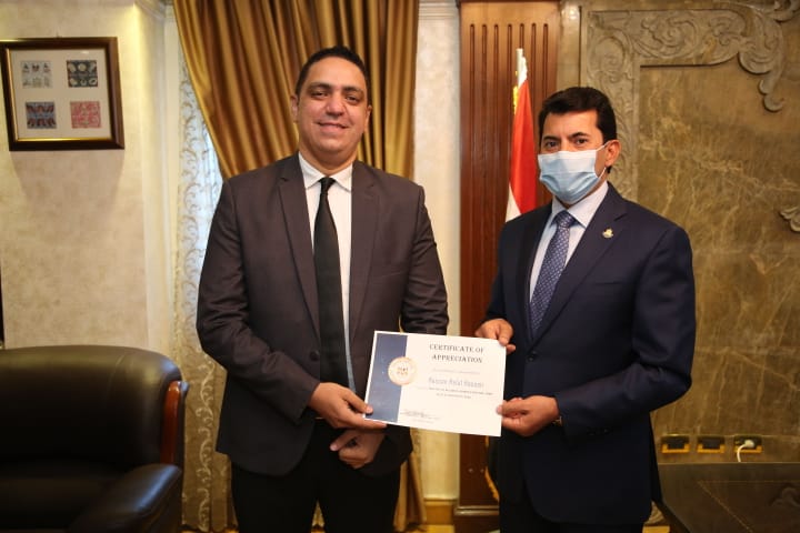 أشرف صبحي يكرم شباب الوزارة الحاصلين علي ماجيستير إدارة الأعمال من جامعة اسلسكا الفرنسية