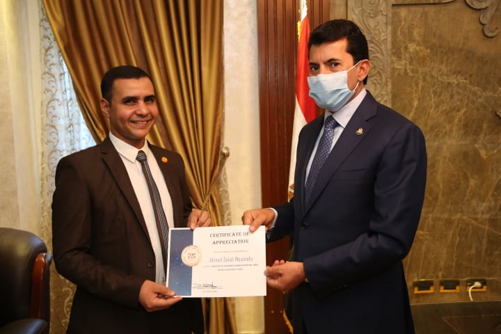 كرم الدكتور اشرف صبحي، وزير الشباب والرياضة، الكوادر الشبابية بالوزارة الذين حصلوا علي ماجستير إدارة الاعمال من جامعة اسلسكا الفرنسية في مصر، بالتعاون مع وزارة التخطيط والمتابعة والتنمية الاقتصادية، في إطار تنفيذ استراتيجية التنمية المستدامة "رؤية مصر ٢٠٣٠"، والتي تهدف الي رفع كفاءة الجهاز الإداري للدولة، من خلال تنمية القدرات والمهارات القيادية والإدارية للإدارة الوسطي والعليا كل في مجال اختصاصه، بهدف اتاحة فرص اكبر لشغل الشباب للمناصب القيادية بالدولة.