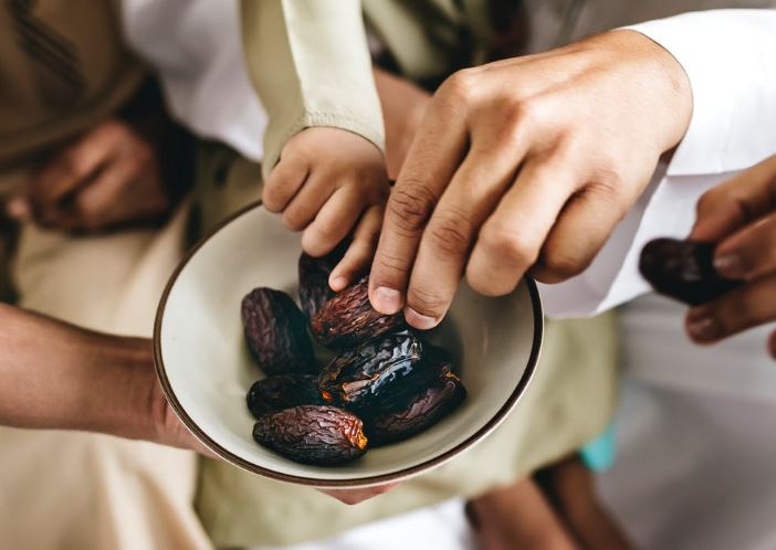 يُفضل تناول ثلاث حبات من التمر عند الإفطار، مع كوب من الماء، مما يهيئ المعدة لاستقبال الطعام ويحفز الجهاز الهضمي