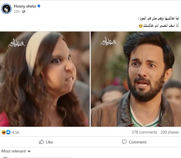 وكتب شتا مازحا على صورة مريم الجندي "لما تعاكسها وهي مش في المود :انا اسف لنفسي اني عاكستك".
