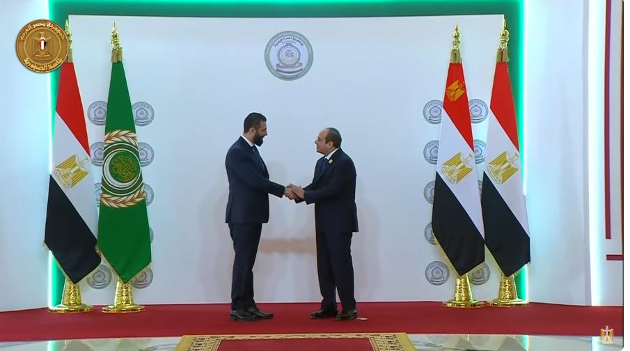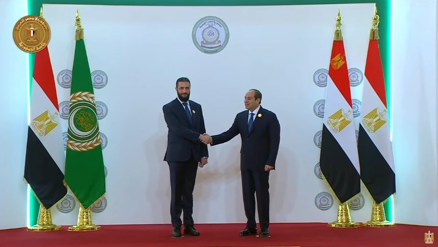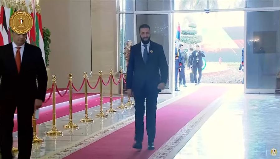 وصل الرئيس السوري الجديد أحمد الشرع إلى مقر انعقاد القمة العربية الطارئة؛ حيث استقبله الرئيس عبد الفتاح السيسي.
