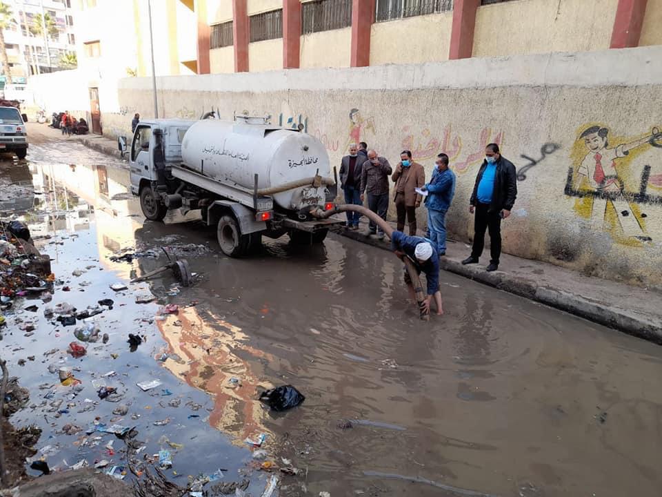 - تم الدفع بفرقة المباني ومعهم الأدوات اللازمة وسيارة محمله بمواد البناء وتم بناء حجرة لماسورة المياه بمثلثة رقم 4 أمام فندق ميركيور بميدان الرماية.