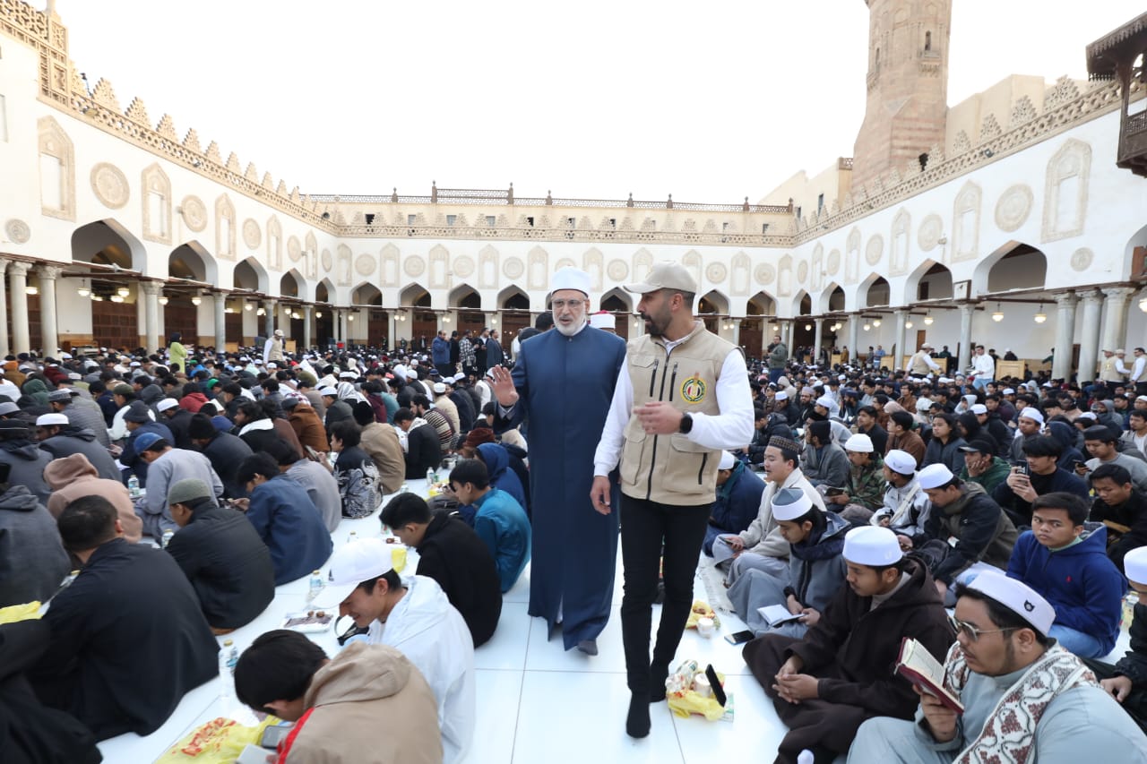 في إطار توجيهات فضيلة الإمام الأكبر الدكتور أحمد الطيب، شيخ الأزهر الشريف، بشأن رعاية الطلاب الوافدين، تفقد فضيلة الدكتور محمد الضويني، وكيل الأزهر، لليوم الرابع من شهر رمضان المبارك الإفطار الجماعي الذي ينظمه الجامع الأزهر للعام الرابع على التوالي، حيث يقدم بيت الزكاة والصدقات 5000 وجبة يوميًّا ضمن برنامجي "إفطار صائم" و"إطعام".