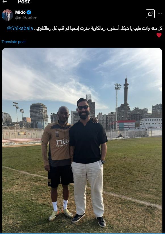 ونشر ميدو صورة تجمعه باللاعب عبر صفحته الرسمية علي منصة "إكس" تويتر سابقآ" وعلق عليها " كل سنه وانت طيب يا شيكا..أسطورة زمالكاوية حفرت إسمها في قلب كل زملكاوي".