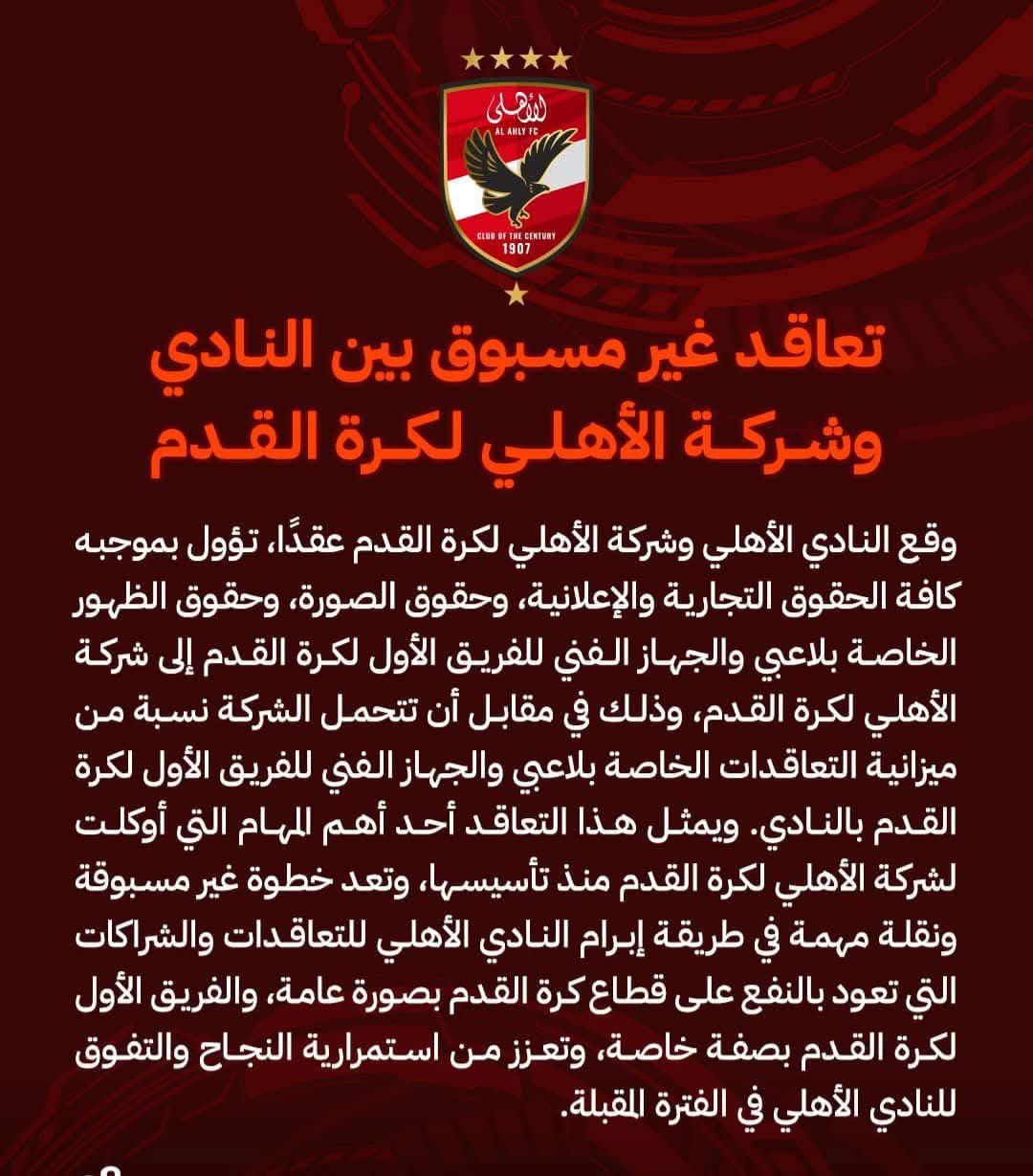 تعاقد غير مسبوق بين النادي وشركة الأهلي لكرة القدم