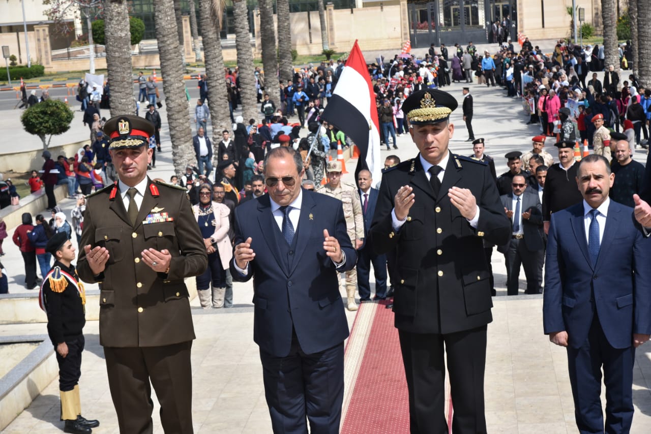 محافظ بورسعيد يضع إكليلٱ من الزهور على النصب التذكاري بميدان الشهداء