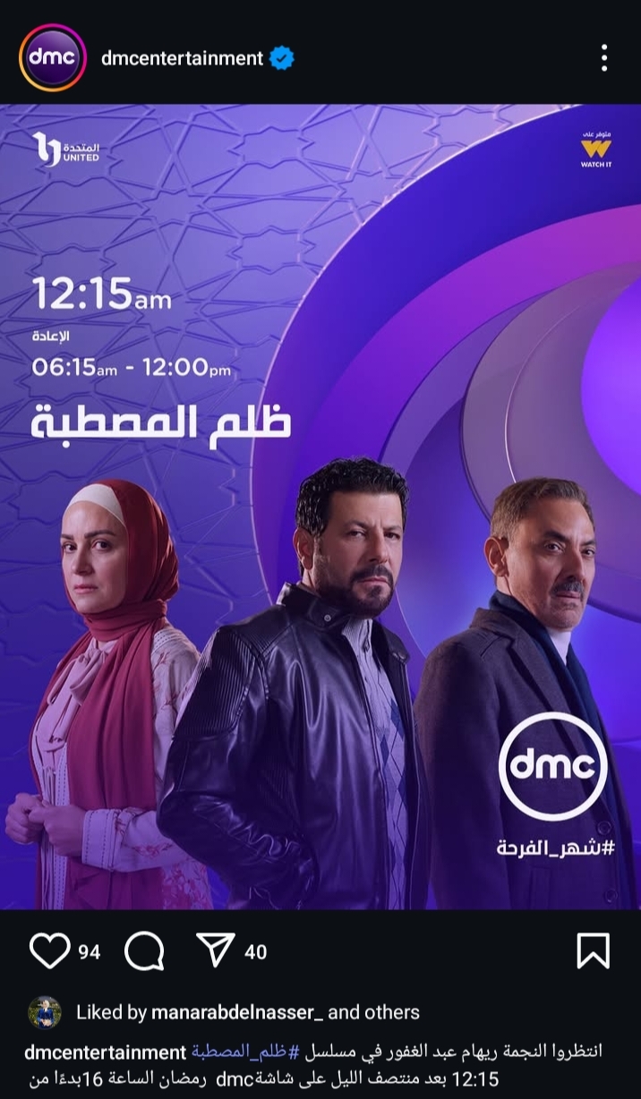 حيث من المقرر عرض مسلسل ظلم المصطبة بطولة ريهام عبد الغفور علي شاشة Dmc في تمام الساعة 12:15 صباحًا، وتأتي الإعادة الأولي في تمام الساعة 6:15 صباحًا، وتأتي الإعادة الثانية في تمام الساعة 12 ظهرًا.