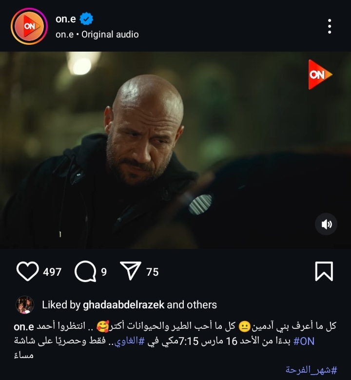 وأعلنت شبكة قناة أون عن موعد عرض الحلقة الاولي من مسلسل الغاوي، وذلك من خلال حسابها الرسمي عبر موقع تبادل الصور والفديوهات القصيرة "إنستجرام"، وعلقت:" كل ما اعرف بني أدمين كل ما أحب الطير والحيوانات أكتر.. انتظروا أحمد مكي في الغاوي بدءًا من الأحد 16 مارس الساعة 7:15 مساءً فقط وحصريًا علي شاشة ON".