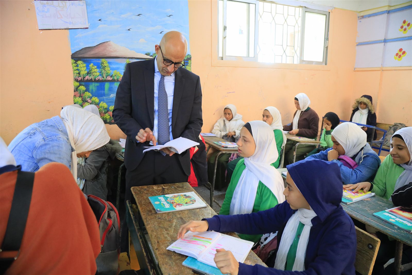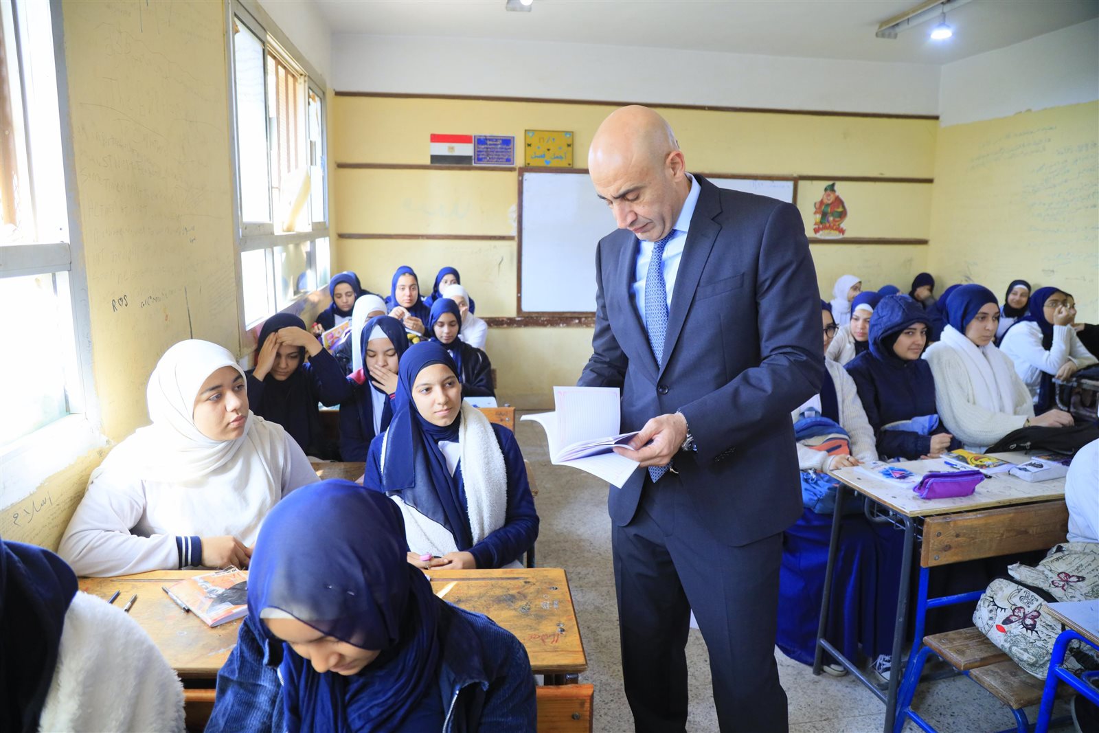 وعقب ذلك، توجه الوزير إلى مدرسة "أنور السادات الثانوية بنات" والتي تضم ١٦٣٠ طالبة، وحرص خلال تفقده على متابعة كراسات الحصة والواجبات المدرسية والتقييمات الاسبوعية وتوزيعها على مدار أيام الأسبوع، وأجرى حوارًا مع الطالبات حول مدى استيعابهن للمواد الدراسية.