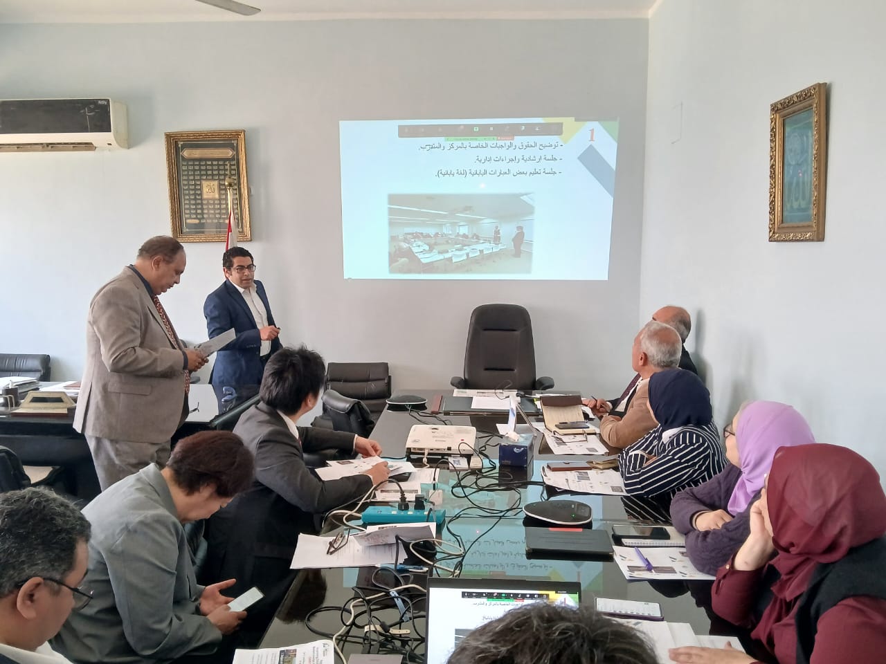 وتضمن الاجتماع عرض لإنجازات المشروع من قبل الدكتور رحاب عبد الله منسق عام المشروع وعن تدريب شيب في اليابان من قبل المهندس محمد حسن عضو فريق المشروع بالإدارة المركزية للإرشاد الزراعي، وكذلك عرض توضيحي عن الجدول الزمني لتنفيذ الانشطة القادمة من قبل هاتا رئيس فريق الجايكا لمشروع الايسماب.