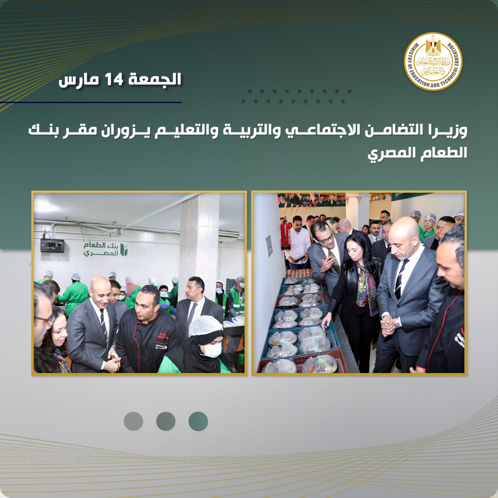 قامت الدكتورة مايا مرسي وزيرة التضامن الاجتماعي، ومحمد عبد اللطيف وزير التربية والتعليم والتعليم الفني، بزيارة مقر مؤسسة بنك الطعام المصري بالقاهرة ، حيث كان في استقبالهما الأستاذ محسن سرحان، الرئيس التنفيذي لمؤسسة بنك الطعام المصري، وعدد من المسؤولين.