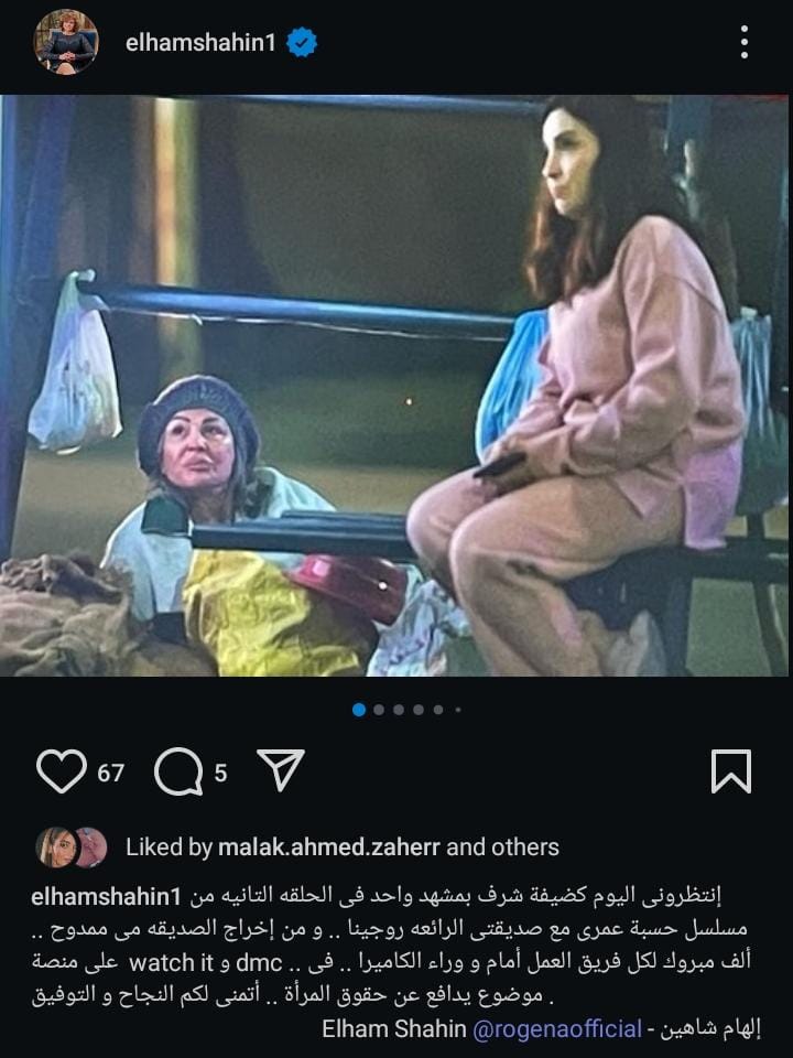 وأعلنت إلهام شاهين عن حلولها ضيفة في الحلقة الثانية من مسلسل حسبة عمري بطولة روجينا، حيث نشرت صور من كواليس الحلقة، وذلك من خلال حسابها الرسمي عبر موقع تبادل الصور والفديوهات القصيرة “إنستجرام”، وعلقت: “ إنتظروني اليوم كضيفة شرف بمشهد واحد في الحلقة التانية من مسلسل حسبة عمري مع صديقتي الرائعة روجينا.. ومن إخراج الصديقة مي ممدوح.. ألف مبروك لكل فريق العمل أمام و وراء الكاميرا.. في موضوع يدافع عن حقوق المرأة.. علي DMC و منصة Watch it.. أتمني لكم النجاح والتوفيق”.