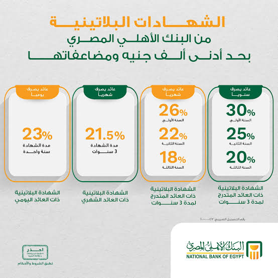 مزايا عامة لشهادات البنك الأهلي المصري