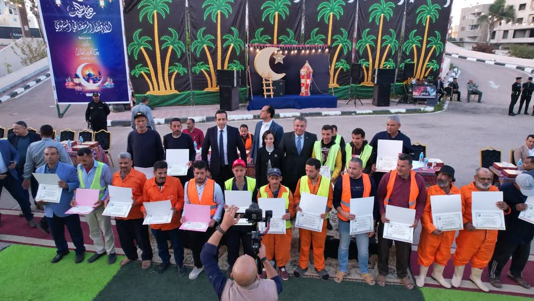 محافظ البحيرة تشارك في إفطار جماعي لعمال النظافة وتكرم 34 منهم