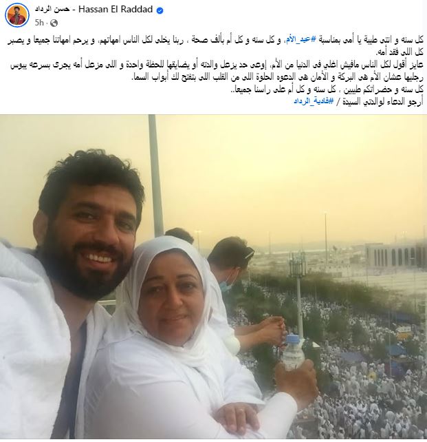 ونشر الرداد صورة له برفقة والدته وكتب عليها " كل سنة وانتى طيبة يا امى بمناسبة عيد الأم، وكل سنة وكل أم بألف صحة ، ربنا يخلى لكل الناس أمهاتهم، و يرحم امهاتنا جميعا ويصبر كل اللي فقد أمه ، عايز أقول لكل الناس مفيش اغلى فى الدنيا من الأم، إوعى حد يزعل والدته أو يضايقها للحظة واحدة و اللى مزعل أمه يجرى بسرعه يبوس رجليها عشان الأم هى البركة و الأمان هى الدعوه الحلوة اللى من القلب اللى بتفتح لك أبواب السماء، كل سنه و حضراتكم طيبين ، كل سنه و كل أم على راسنا جميعا".