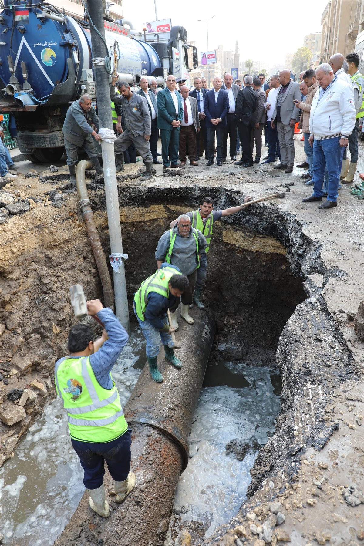 محافظ القاهرة يشرف على العمليات الجارية لإصلاح كسر ماسورة مياه بشارع بورسعيد