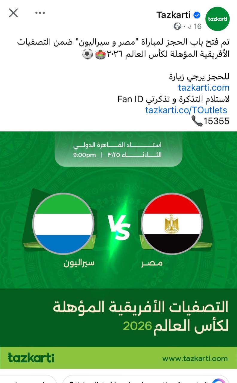 تذكرتي تطرح تذاكر مباراة مصر و سيراليون في تصفيات كأس العالم